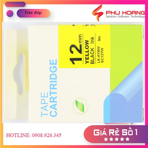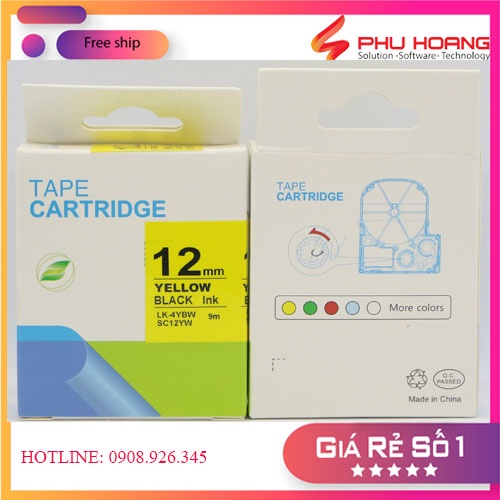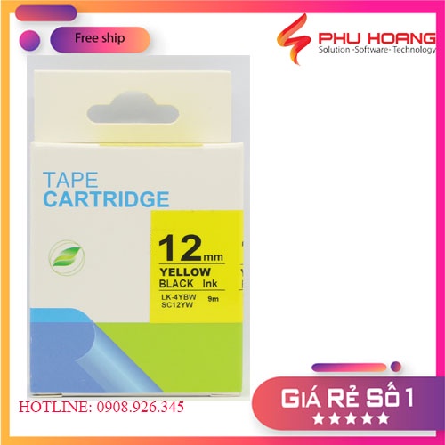 Băng mực in nhãn SC12YW/LK-4BYW sử dụng cho máy in Tepra và Espon chữ đen nền vàng khổ rộng 12mm