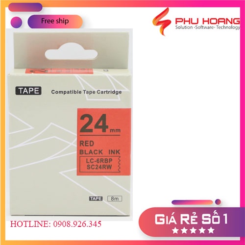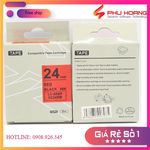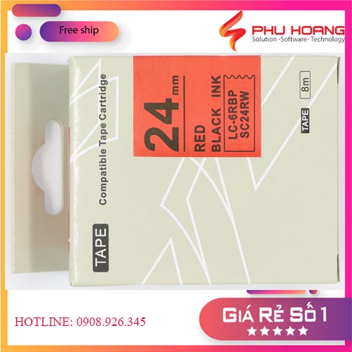 Băng mực in nhãn SC24RW/LC-6RBP sử dụng cho máy in Tepra và Espon chữ đen nền đỏ khổ rộng 24mm dài 8m