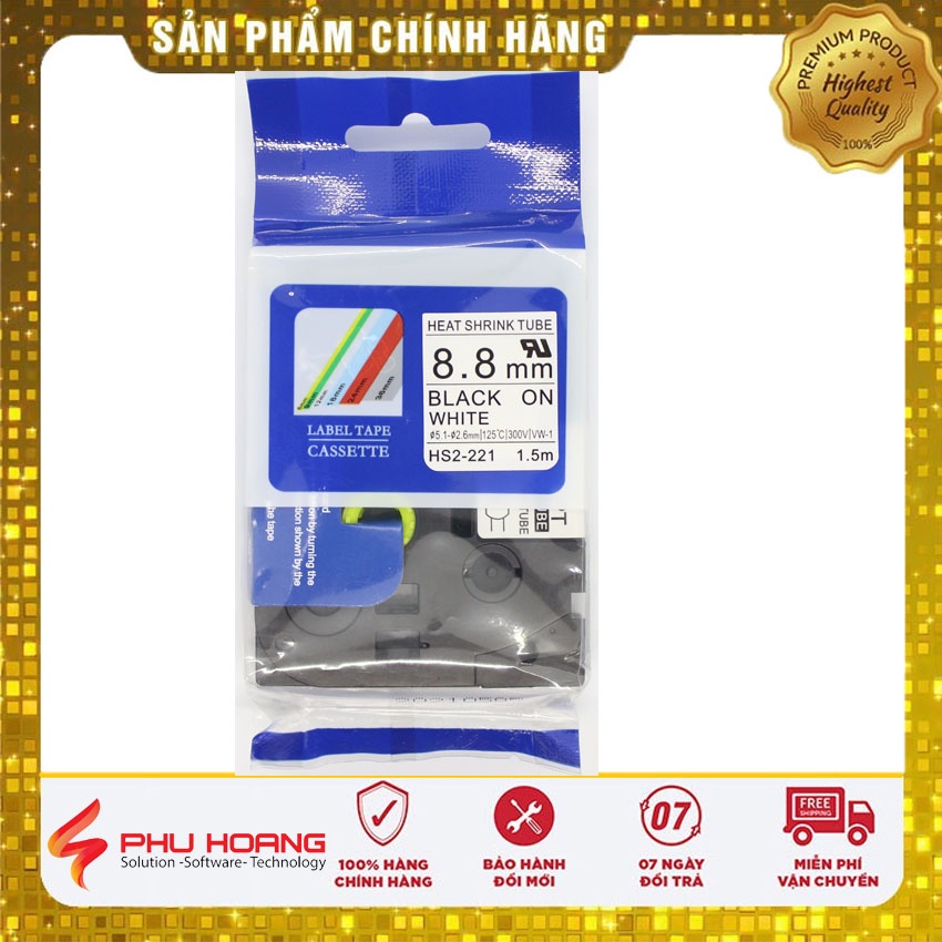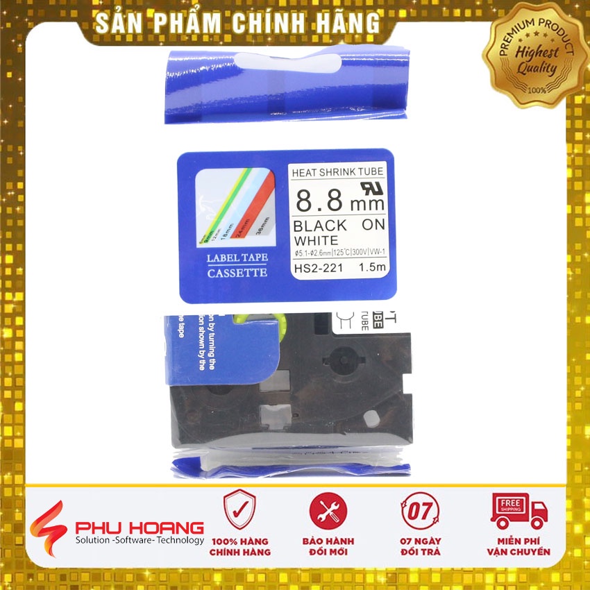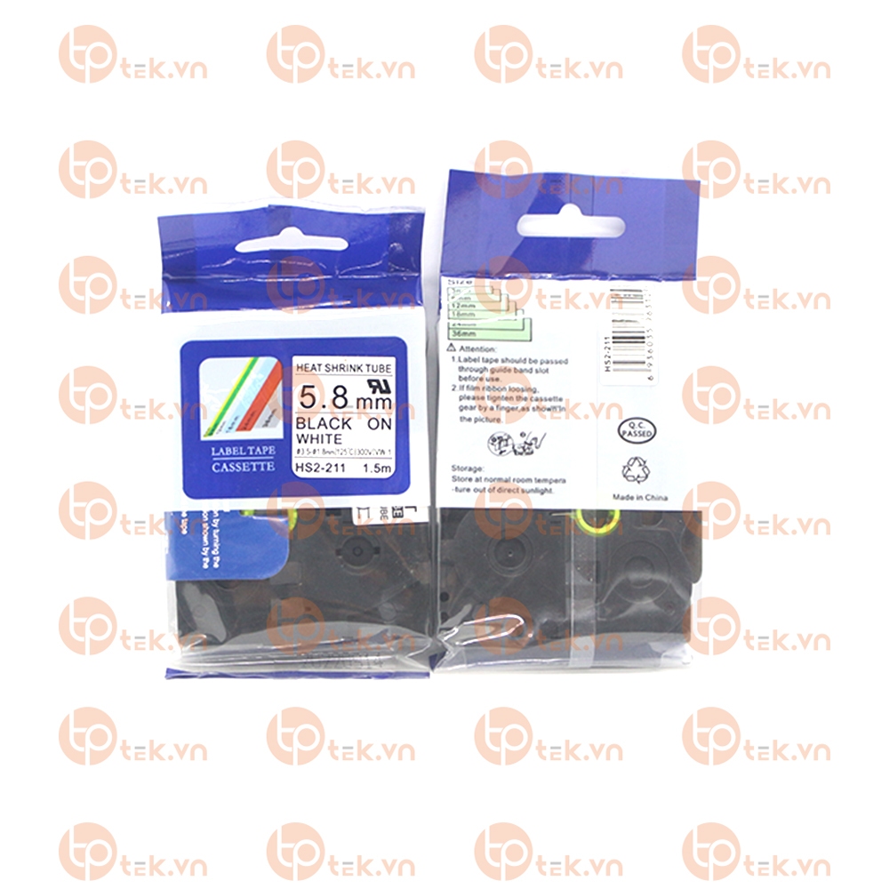 Ống Co Nhiệt HS2-211, chữ đen trên nền trắng, Ống Băng, kích thước 5.8mm * 1.5M, máy in nhãn Brother, phu hoang company