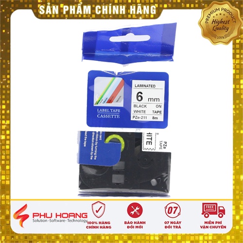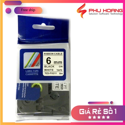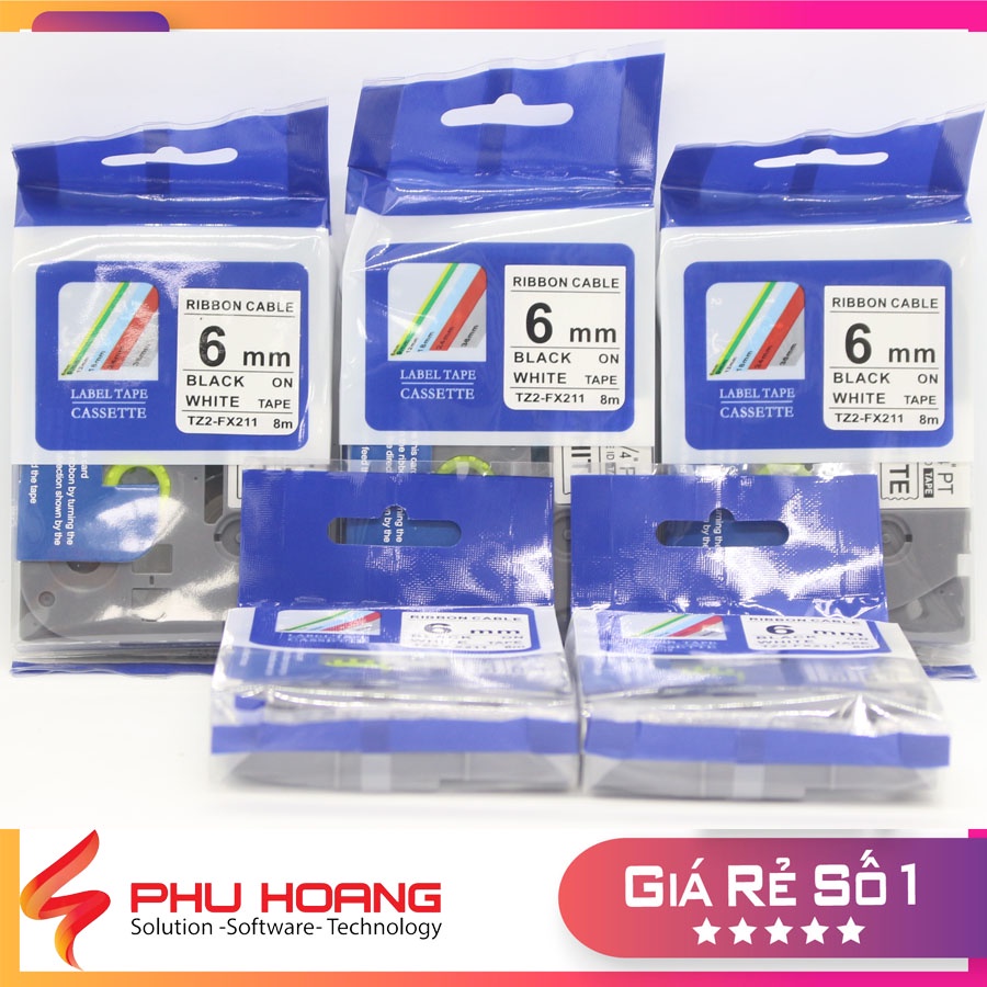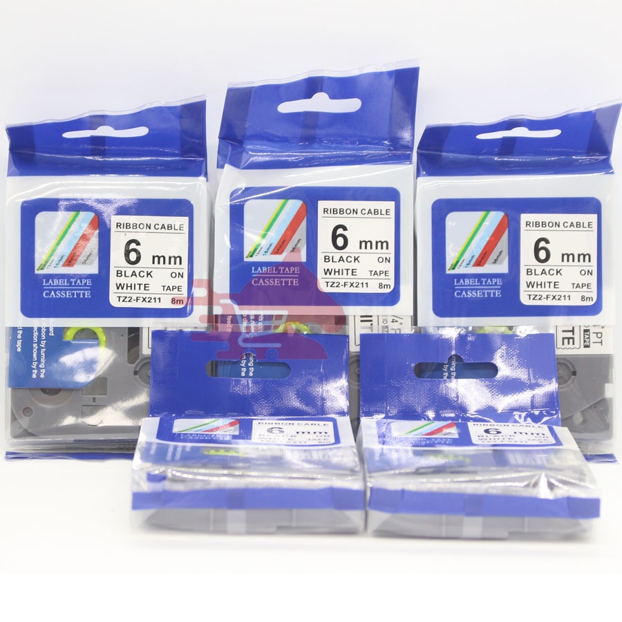 [Combo 5 hộp] Nhãn in Tz2-211, khổ rộng 6mm* dài 8m, chữ đen nền trắng, chống thấm nước, chống trầy xước, Brother Ptouch