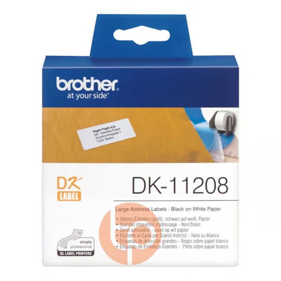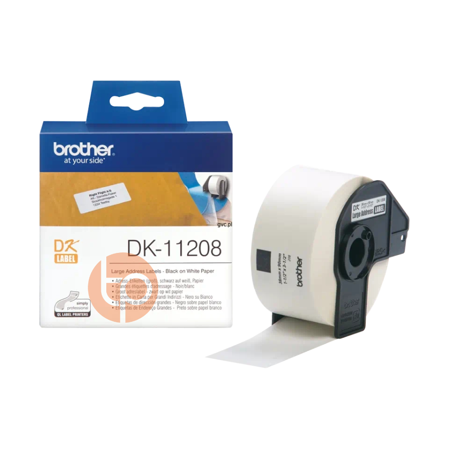 Nhãn in Brother DK-11208, rộng 38mm * dài 90mm * 400 nhãn, nhãn bế, giấy decal.