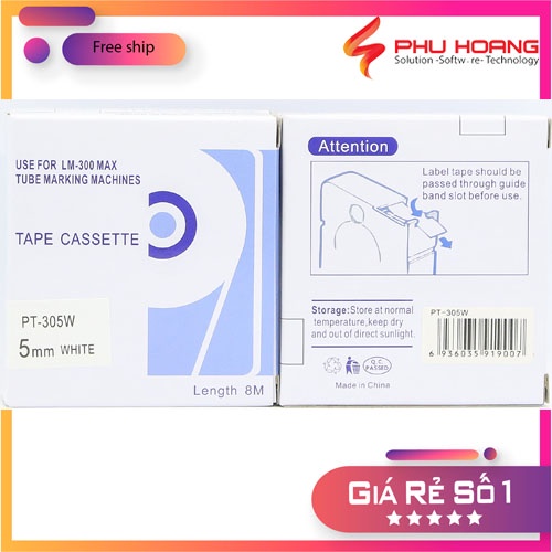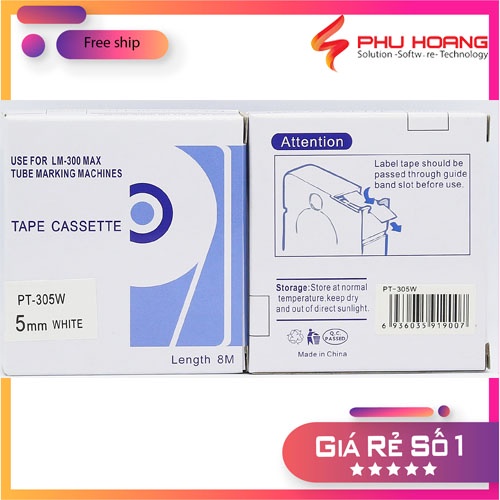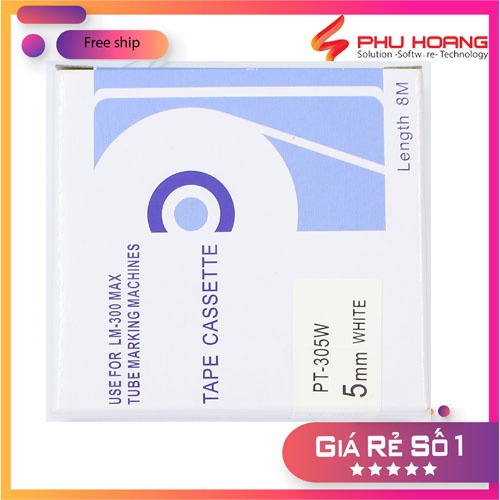 Băng in nhãn Max PT-305W, rộng 5mm, dài 8m/cái, màu trắng, sử dụng cho máy Max LM-370E, LM-380E, LM-380A, LM-390A