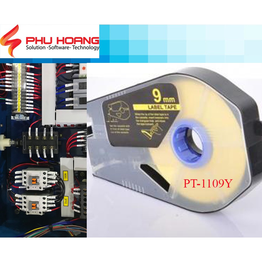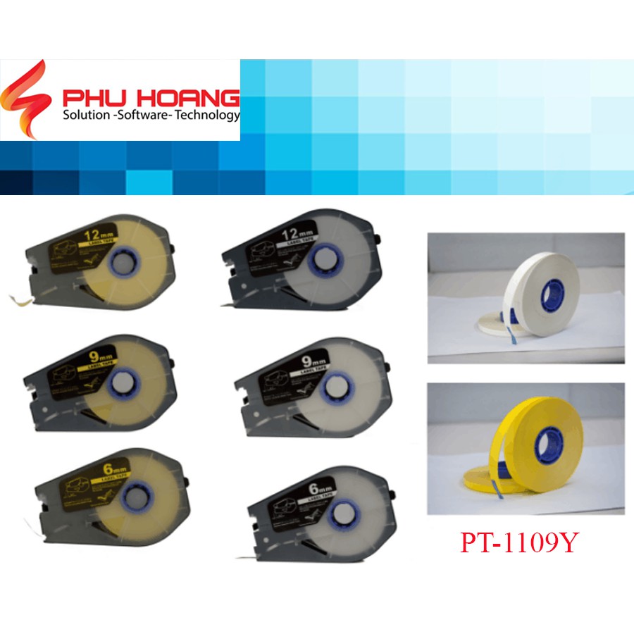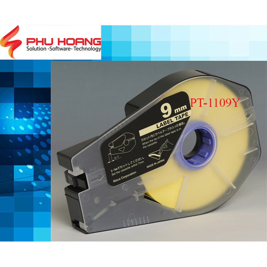 Nhãn in Canon PT-1109Y, Kích thước: 9mm*100m, màu vàng, sử dụng cho máy in Canon MK1100, Mk1500, Mk2500, Mk2600