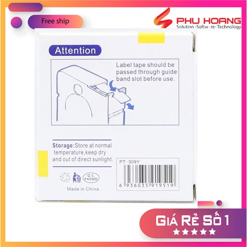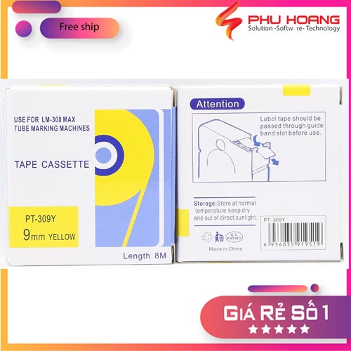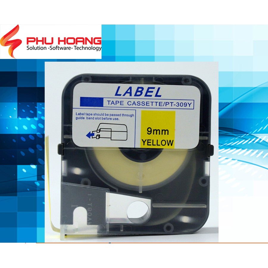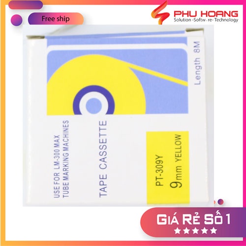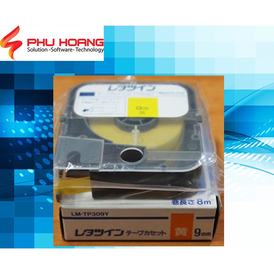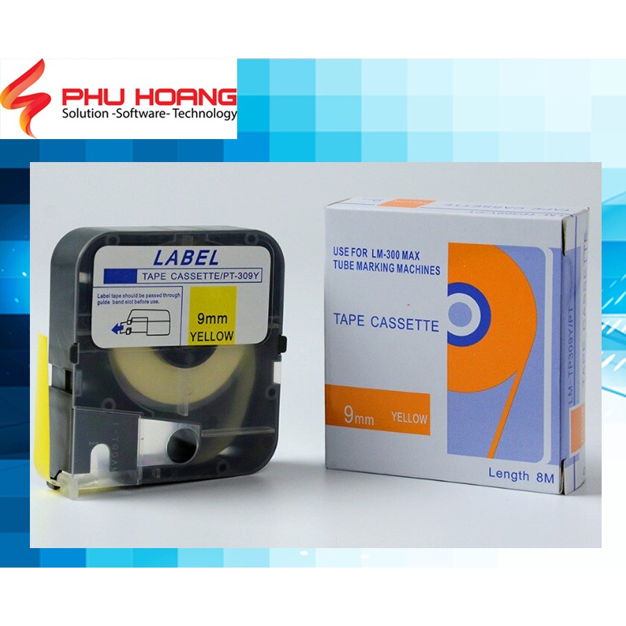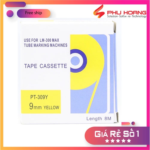 Băng in nhãn tương thích Max PT-309Y, rộng 9mm, dài 8m/cái, màu vàng, dùng cho máy in LM-370E, LM-380E, LM-380A, LM-390A