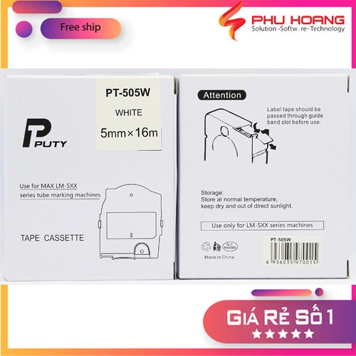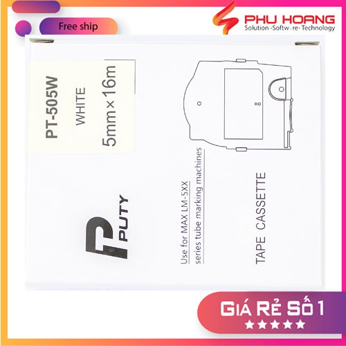 Băng in nhãn Max LM-PT505W, rộng 5mm, dài 16m/cái, màu trắng, sử dụng cho máy in đầu cốt Max (LM-550A/PC, LM-550E)