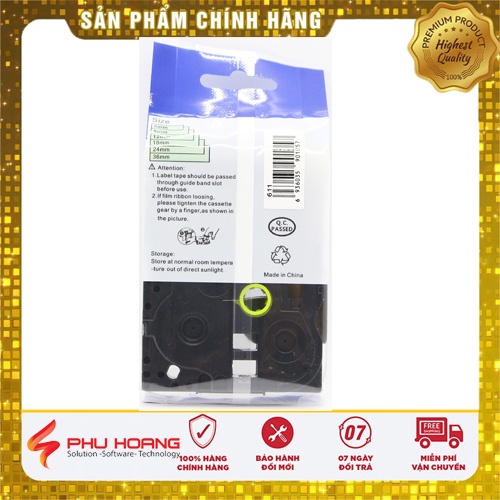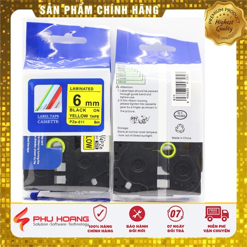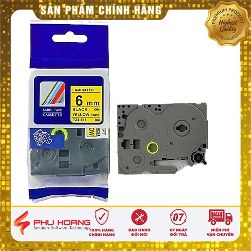 Nhãn in TZ2-611(tương thích Tze-611, hze-611), chữ đen nền vàng 6mm (Black on Yellow), phu hoang company