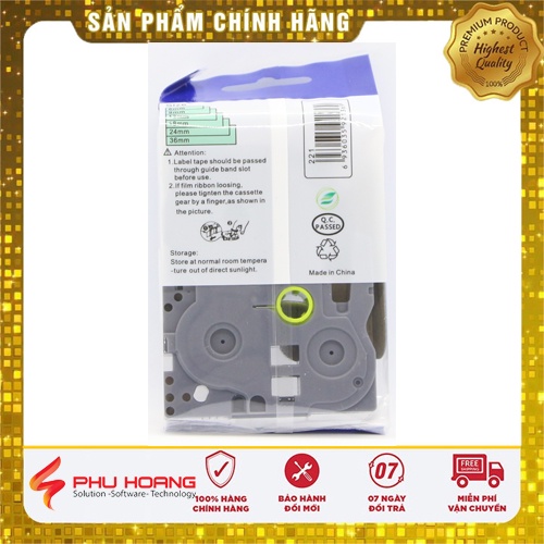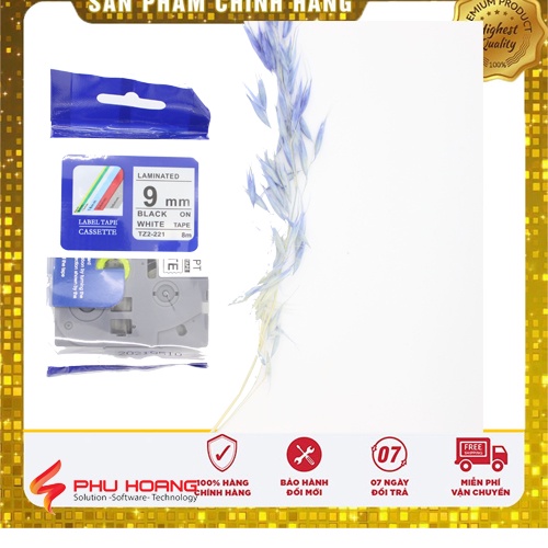 Nhãn in TZ2-221, Khổ rộng 9mm dài 8m, chữ đen nền trắng ( Black on white), nhãn đa lớp, bám dính cao.