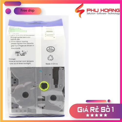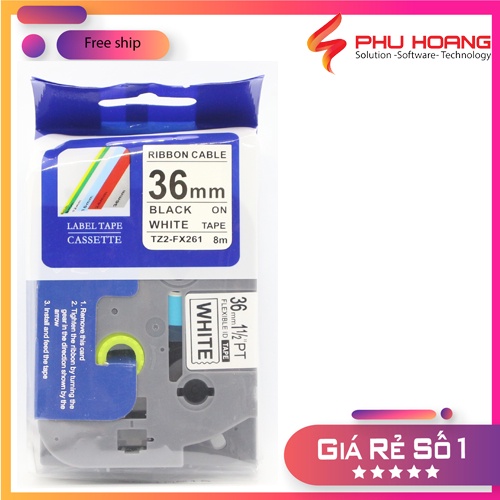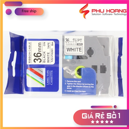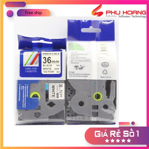 Nhãn in TZ2-FX261, Khổ rộng 36mm, chữ đen nền trắng( Black on White), siêu dẻo, nhãn in đa lớp, bám dính cao.