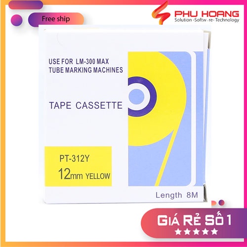 Băng in nhãn tương thích Max PT-312Y, rộng 9mm, dài 8m/cái, màu vàng, dùng cho máy in Max LM-370E, LM-380E, LM-390A