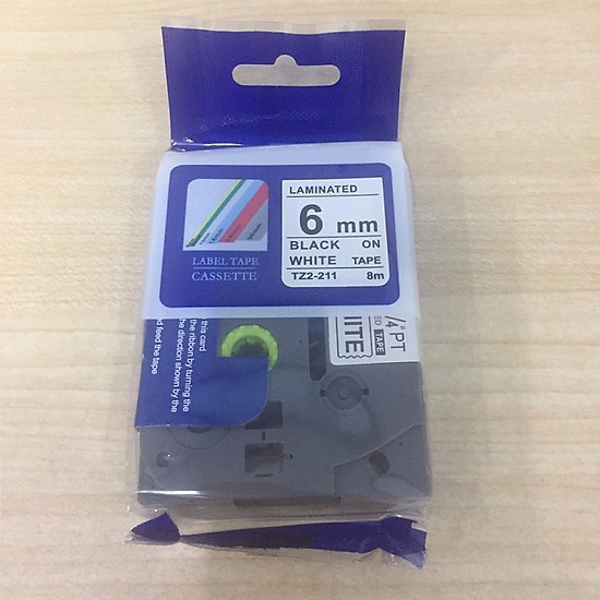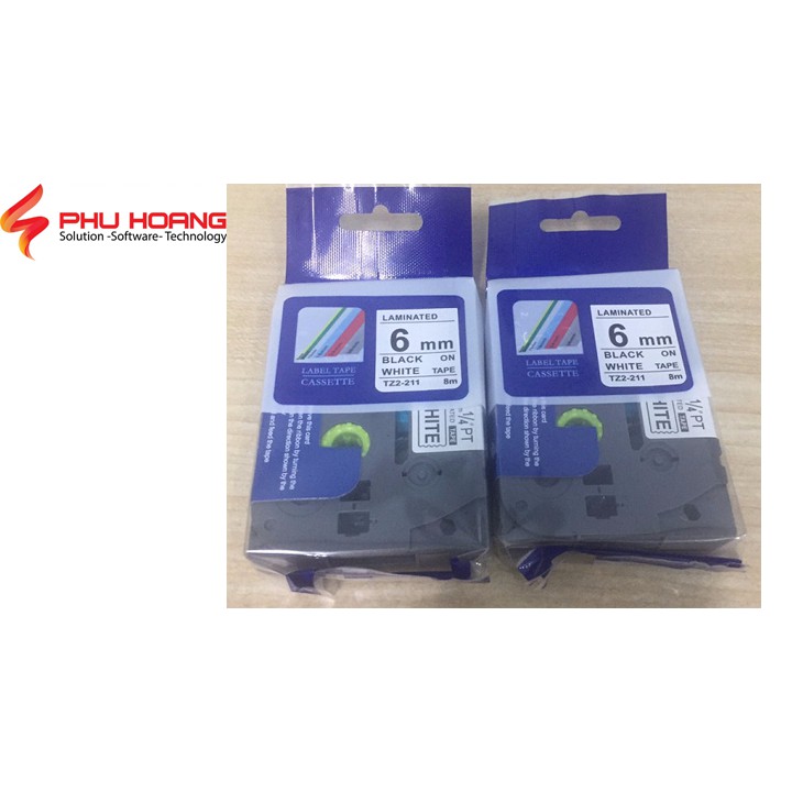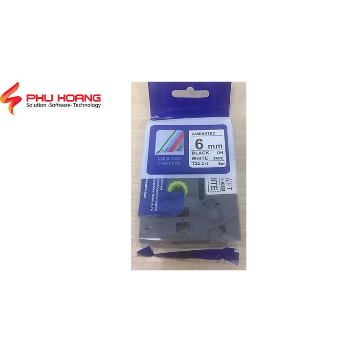 Băng in nhãn TZ2-211(nhan in tze-211, hze-211), Khổ rộng 6mm, chữ đen nền trắng, sử dụng cho máy in nhãn Brother.