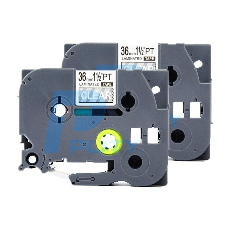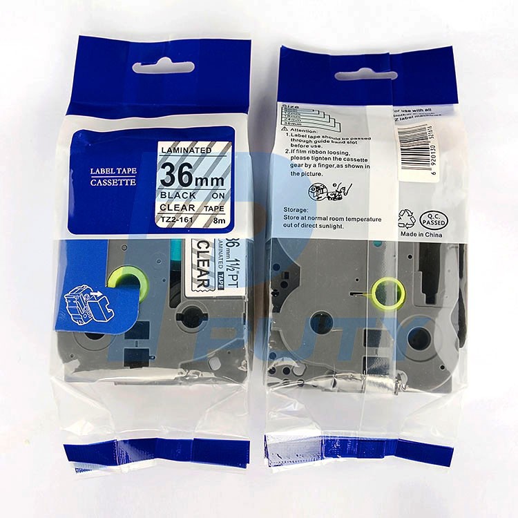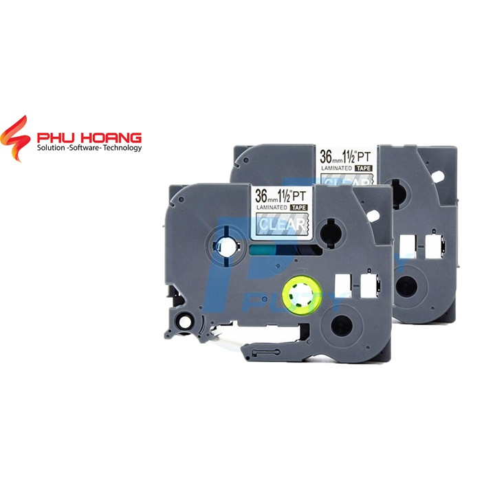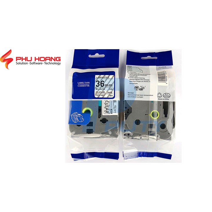Nhãn in TZ2-161, Khổ rộng 36 mm, chữ đen nền trong suốt ( Black on clear), bám dính cao