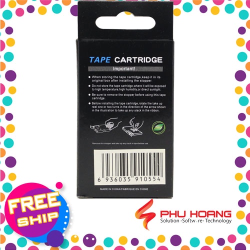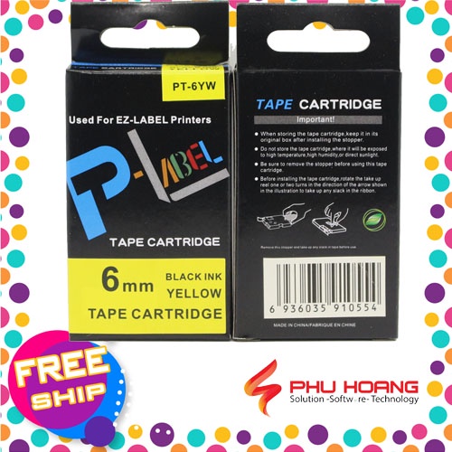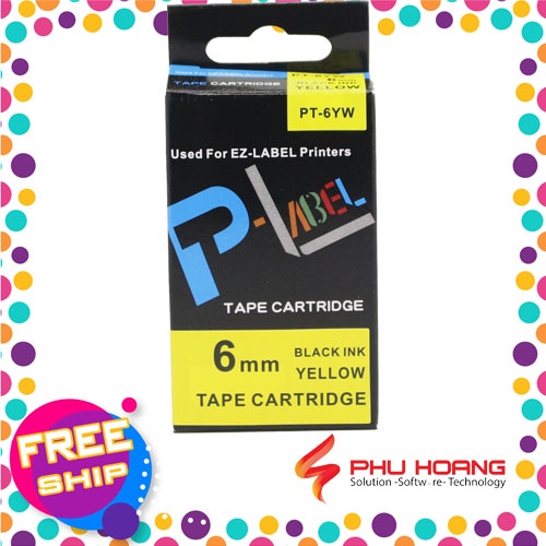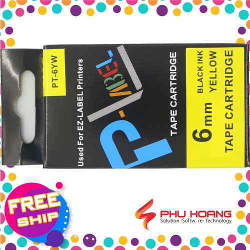 Nhãn in Casio PT-6YW, chữ đen nền vàng, khổ rộng 6mm