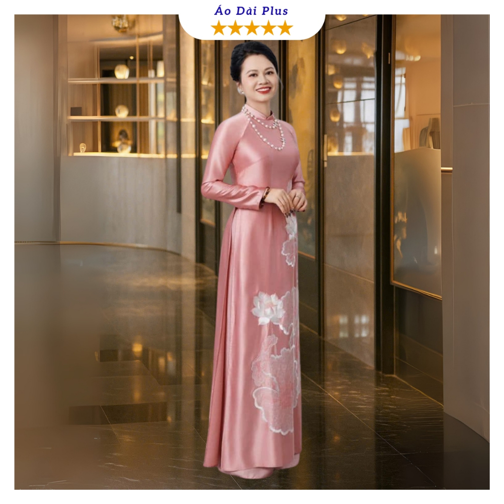 Bộ áo dài lụa satin cao cấp thêu tay sang trọng thiết kế sang trọng ADM32