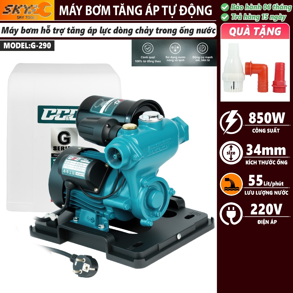 Máy bơm tăng áp, cao áp GGG - G280D 800W, đóng ngắt tự động, thương hiệu Thái Lan, Bảo Hành 06 tháng
