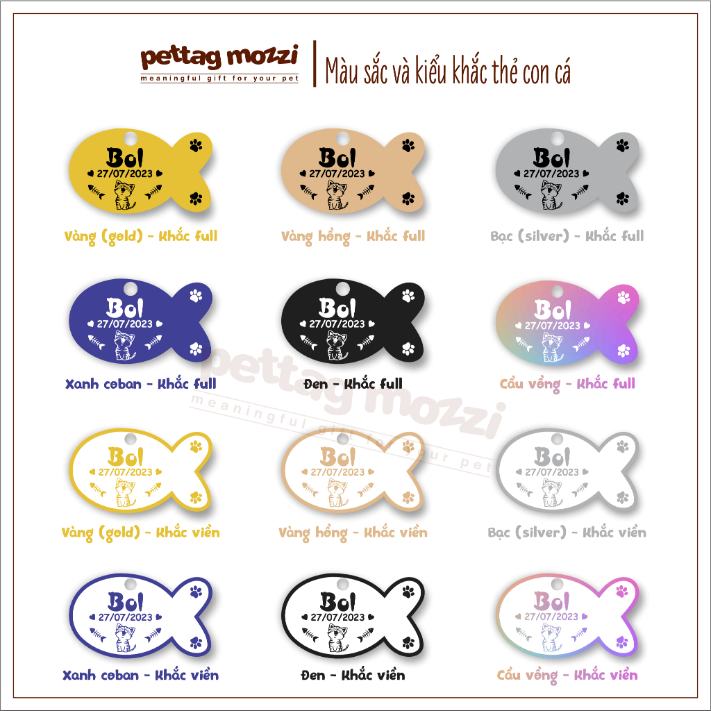 [Hỏa tốc] Thẻ tên chó mèo chất liệu inox khắc theo yêu cầu - Pettag Mozzi