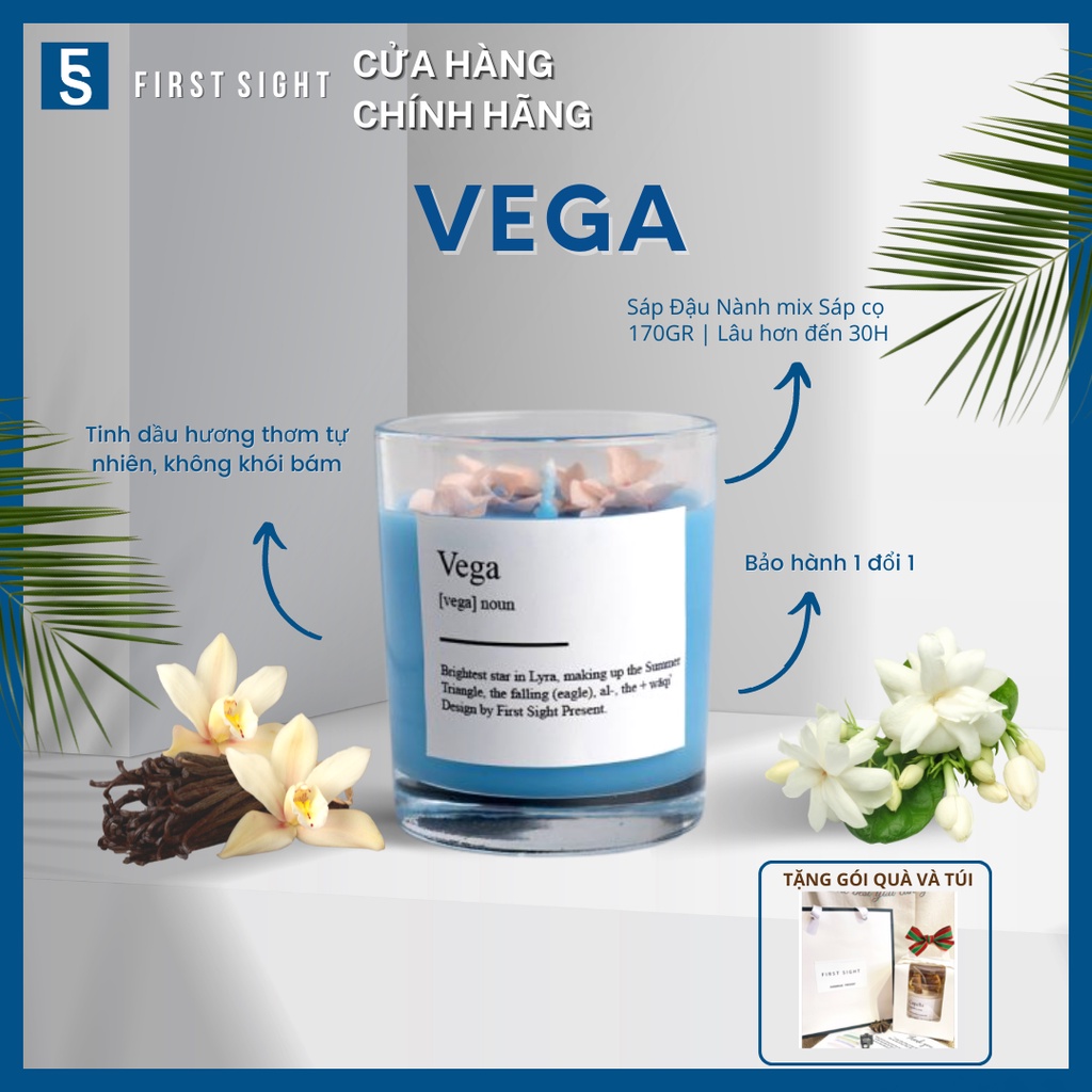 Nến thơm First Sight handmade Vega hương Vani và Lavender Ngọt Dịu tinh dầu cao cấp không khói hũ 170gr