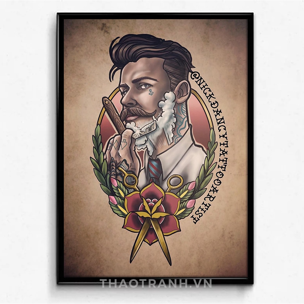 Tranh Decor Barber Shop -Trang Trí Tiệm Hớt Tóc Nam, Phong cách Cổ Điển Cá Tính
