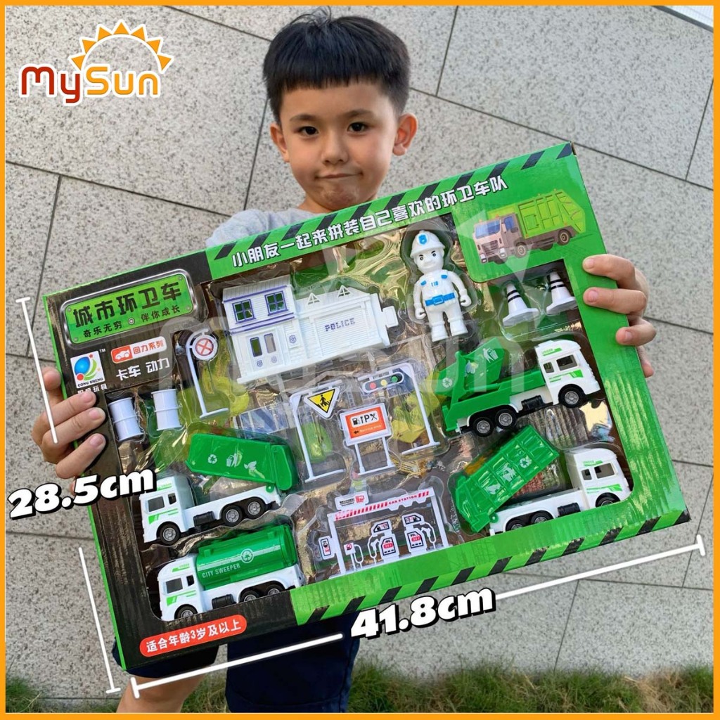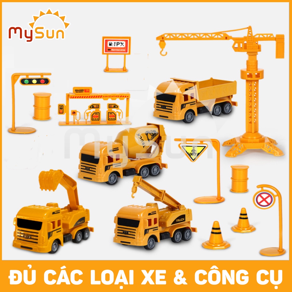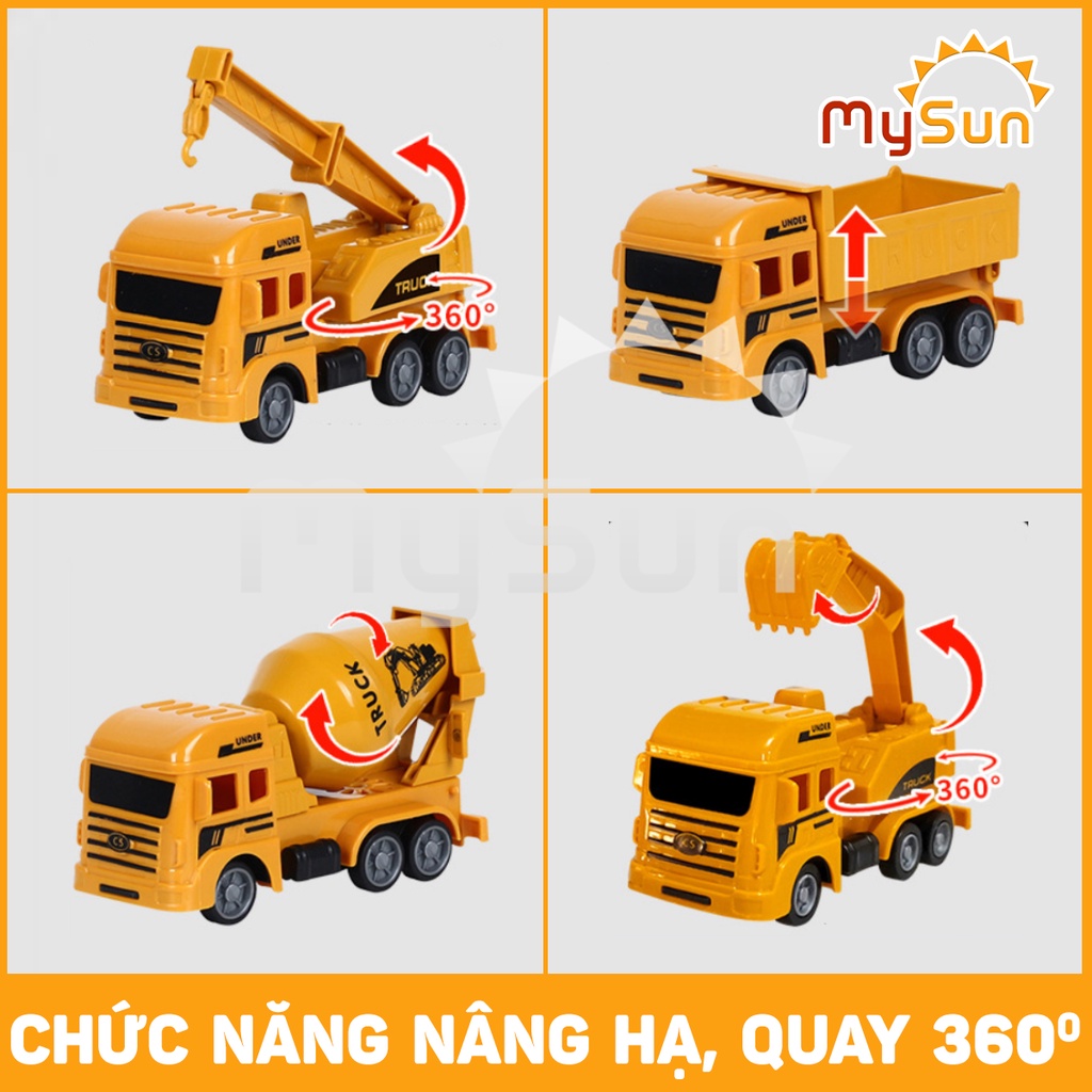 Bộ mô hình xe đồ chơi CÔNG TRÌNH cho bé trai: Cần cẩu, Xe Ben, Xe Tải, Trộn bê tông – MySun