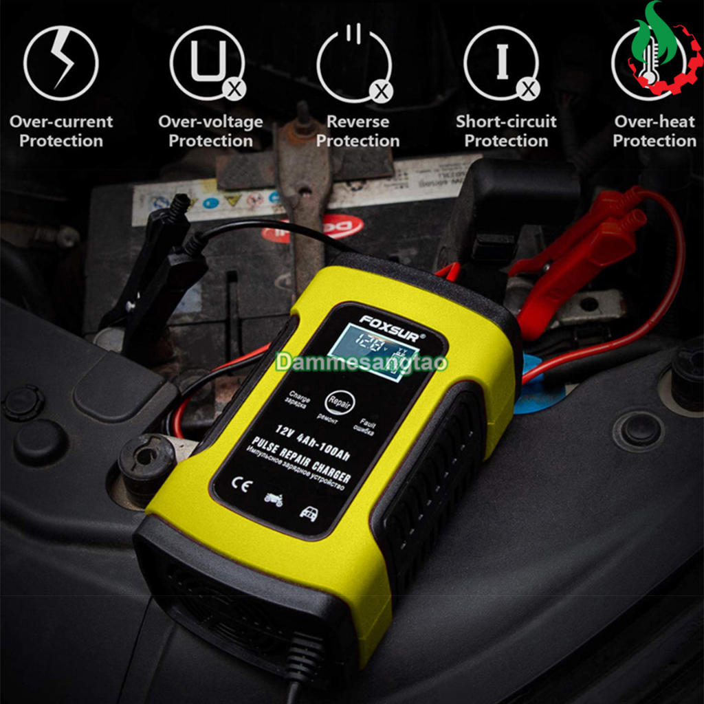 Sạc bình acquy ô tô xe máy 12V 4-100AH Tự động ngắt sạc khi đầy