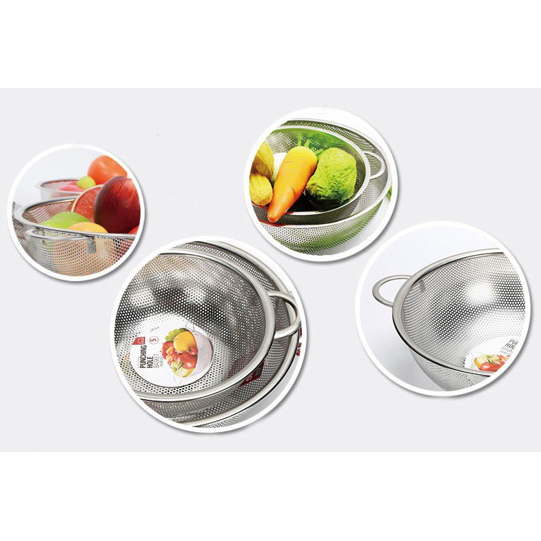 RỔ INOX ĐỰNG RAU CỦ CÓ ĐẾ RÁO NƯỚC 22.5cm