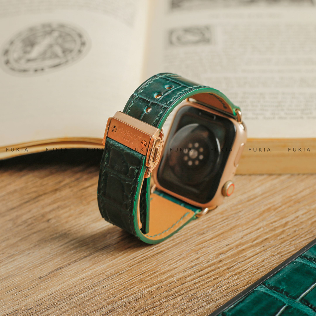 Dây da thủ công Cá Sấu Xanh rêu dành cho iWatch, đồng hồ thông minh, đồng hồ cơ FUKIA DDTC254