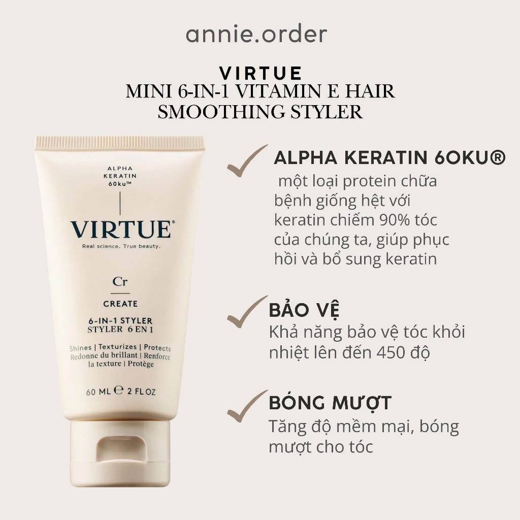 Kem dưỡng và tạo kiểu tóc Virtue Mini 6-in-1 Vitamin E Hair Smoothing Styler