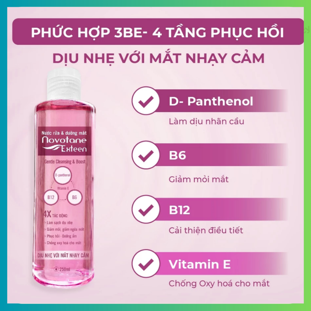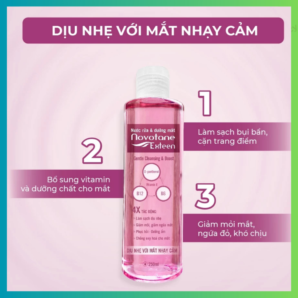 Nước rửa mắt và dưỡng mắt Novotane Extan- Chai 250ml- Giúp Làm Sạch Bụi Bẩn Dưỡng Mắt Hỗ Trợ Giảm Khô Mắt, Mỏi Mắt