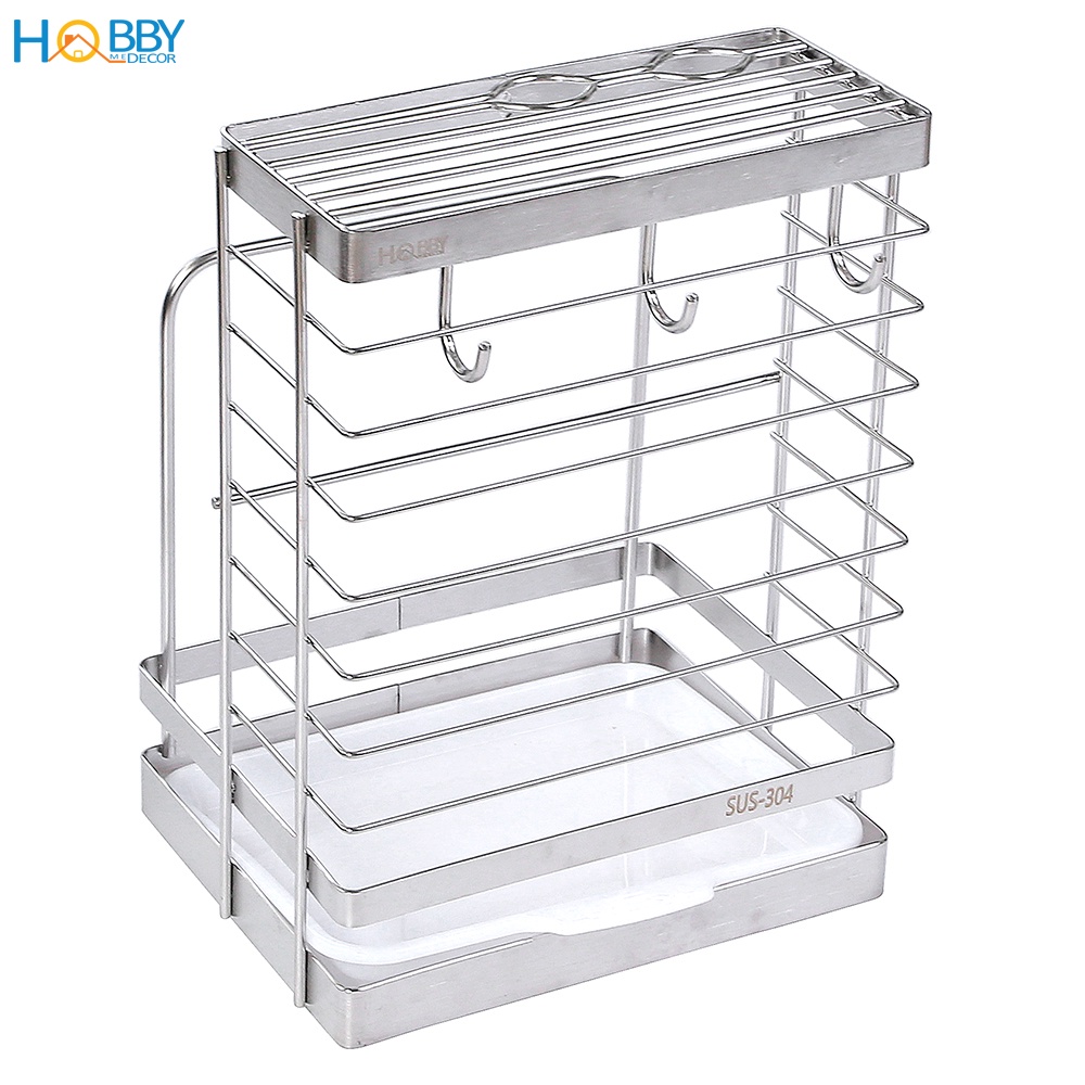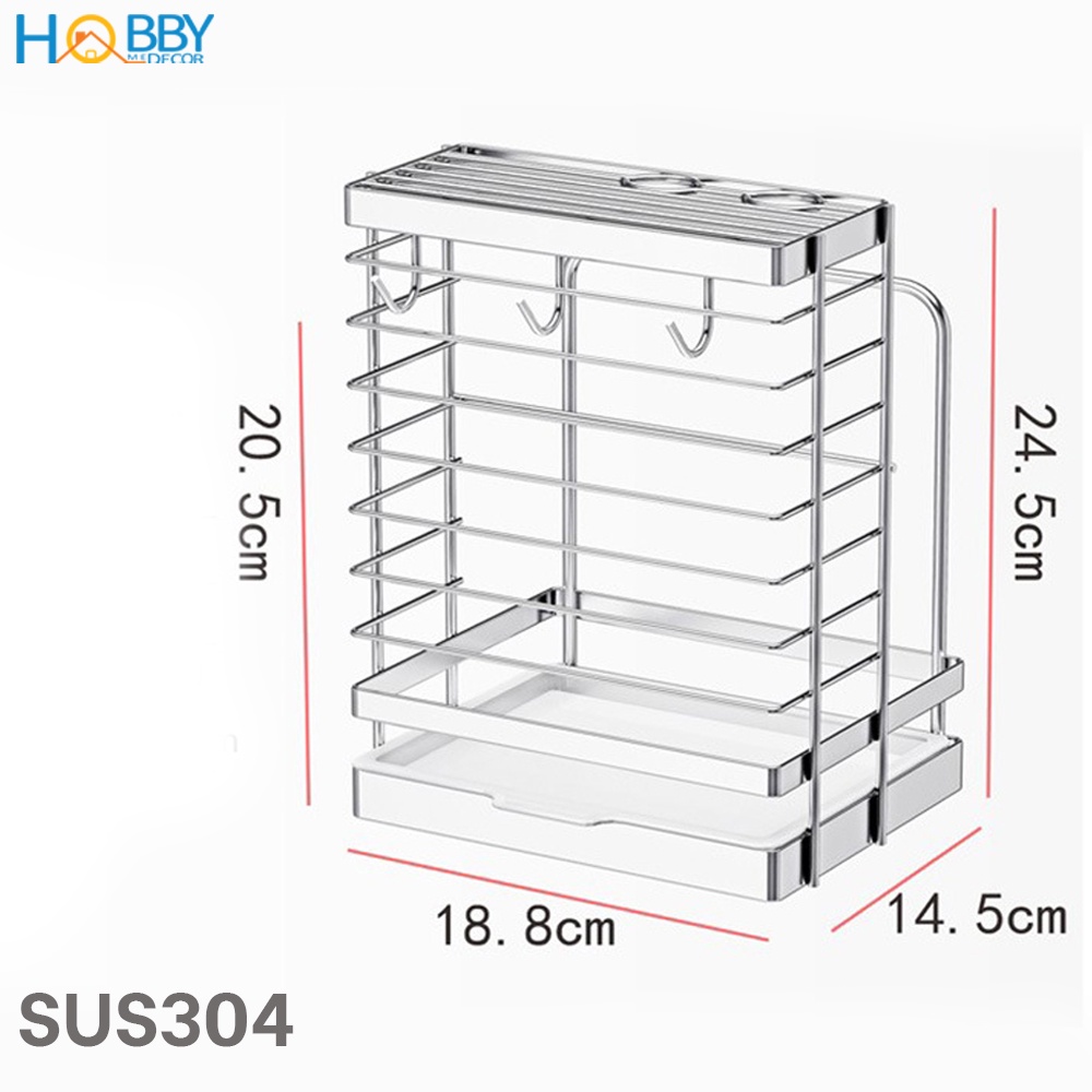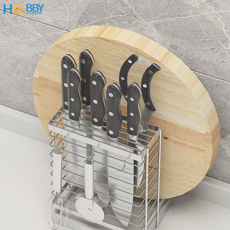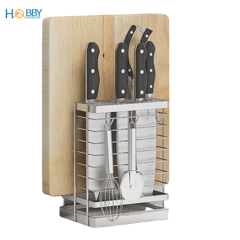 Kệ cắm dao keo thớt có 3 móc treo đồ inox 304 Hobby Home Decor DD2N3