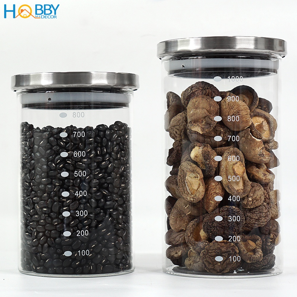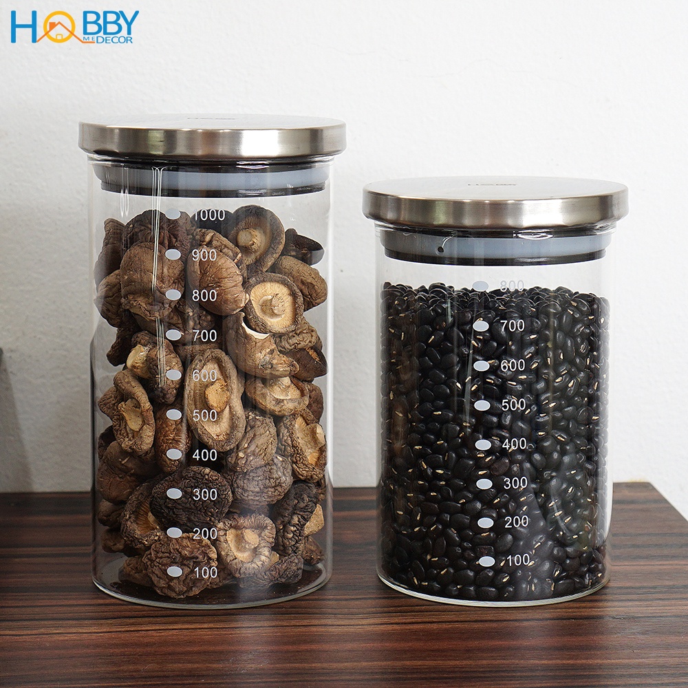 Hủ thủy tinh để hạt nắp Inox 304 kín ron HOBBY Home Decor TTI 3 size