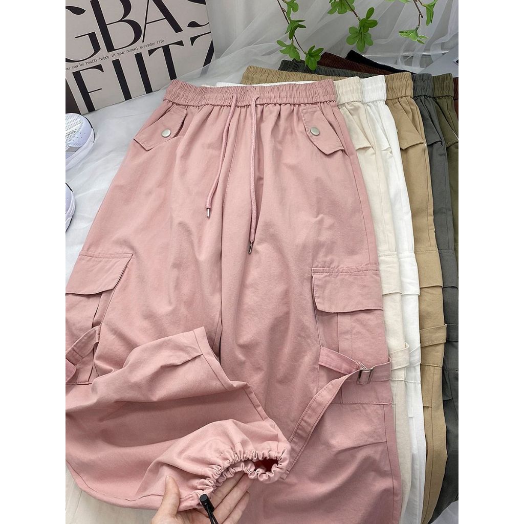 Quần túi hộp nữ thiết kế Quần ống rộng cạp chun dây rút túi hộp hai bên đầy cá tính