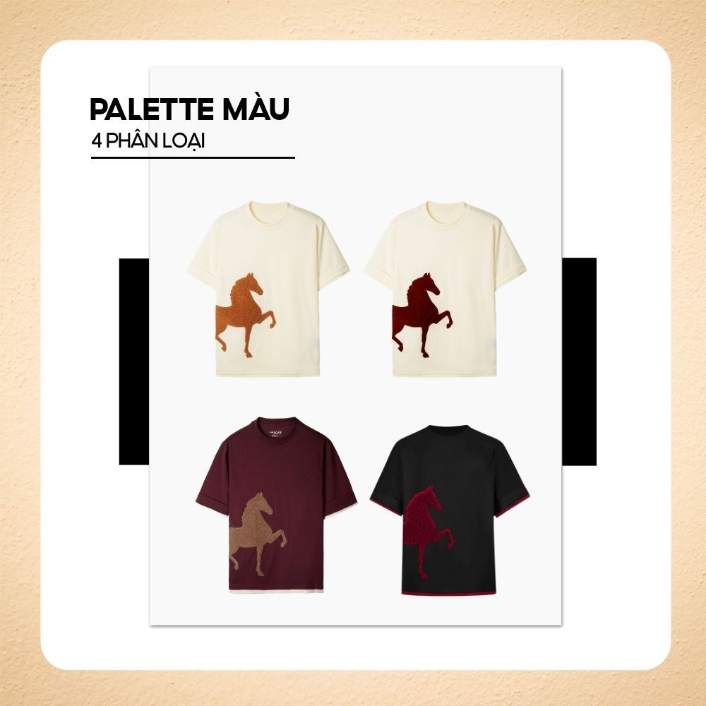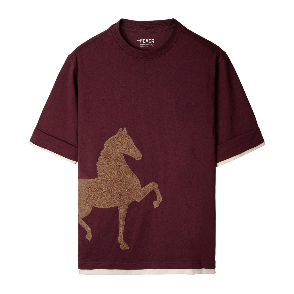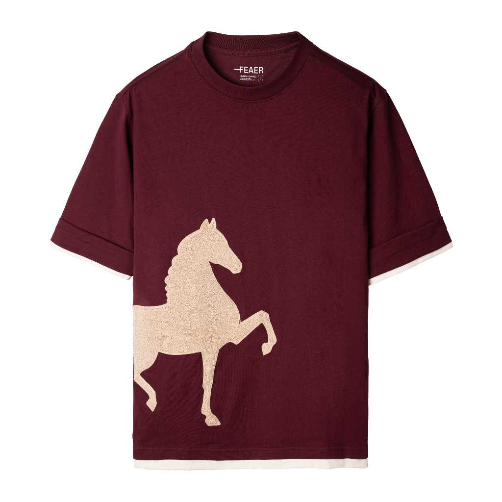 Áo thun PONEY thêu xù hình ngựa 3D ý nghĩa thăng tiến, may mắn, vải cotton tự nhiên mềm mát - FEAER