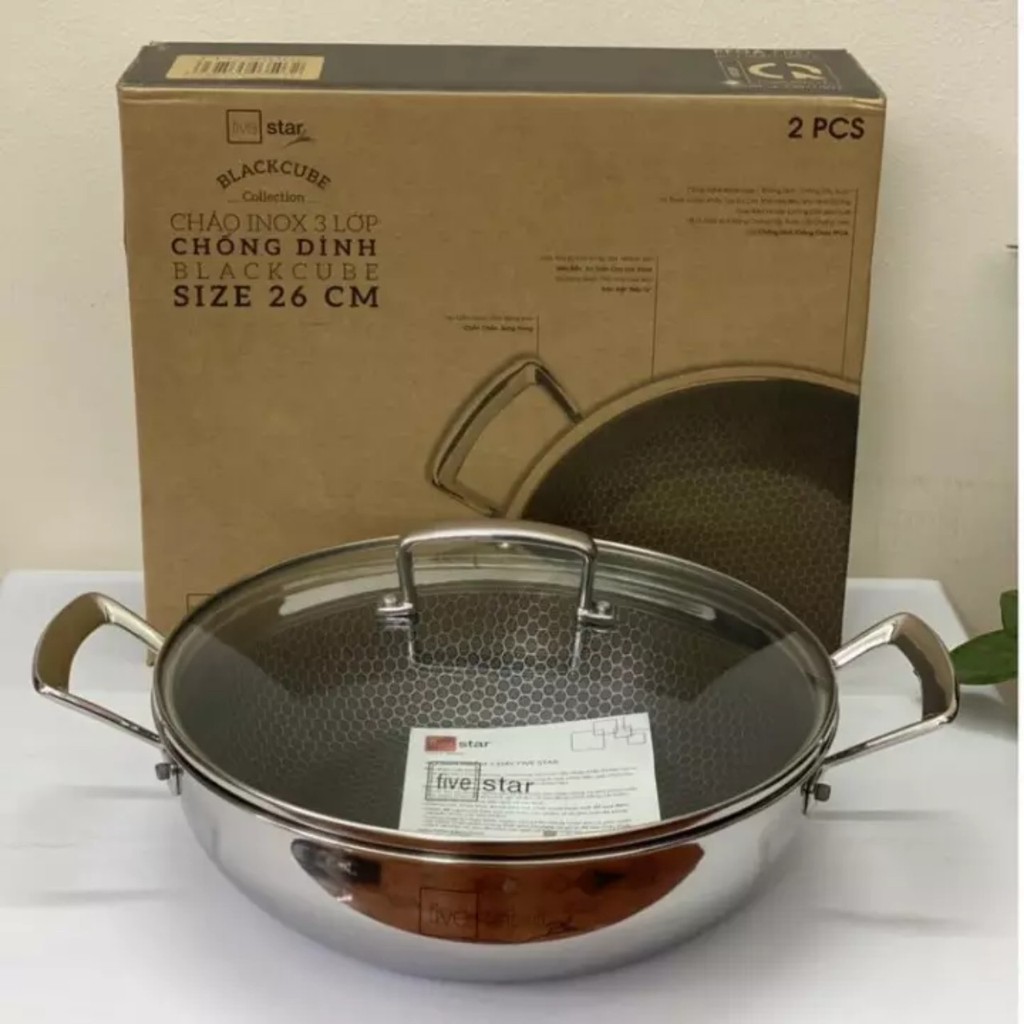 Chảo tổ ong chống dính 2 quai FIVESTAR 3 lớp đáy liền inox 304 siêu bền , chống trầy xước,24cm, 26cm,28cm , tặng 5 muỗng