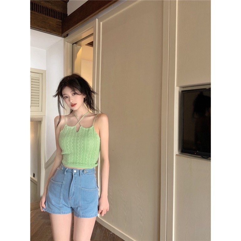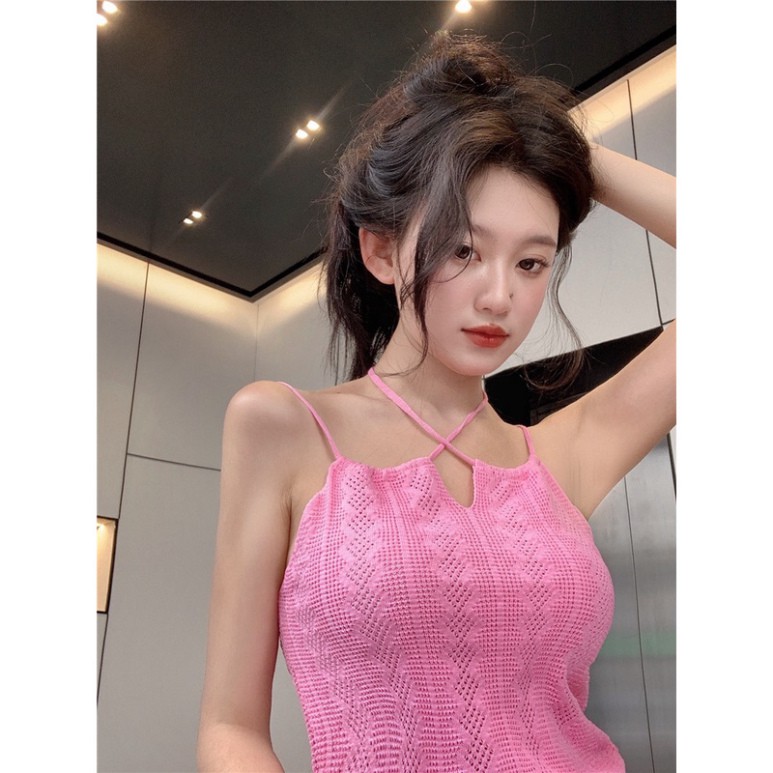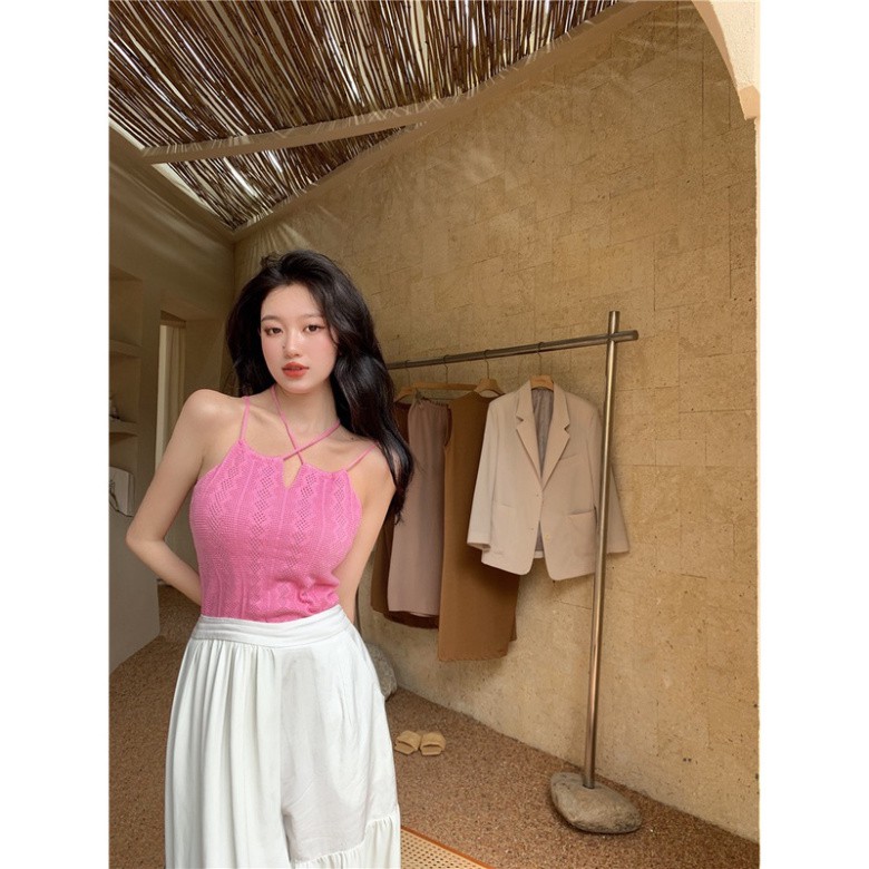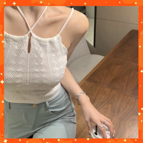 Áo 2 Dây Hở Lưng Cổ Yếm Len Dệt Kim Mùa Hè A2S15
