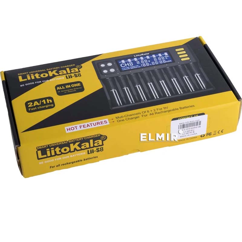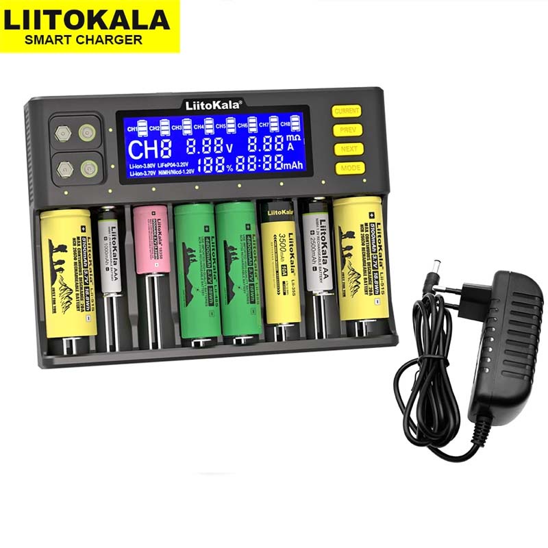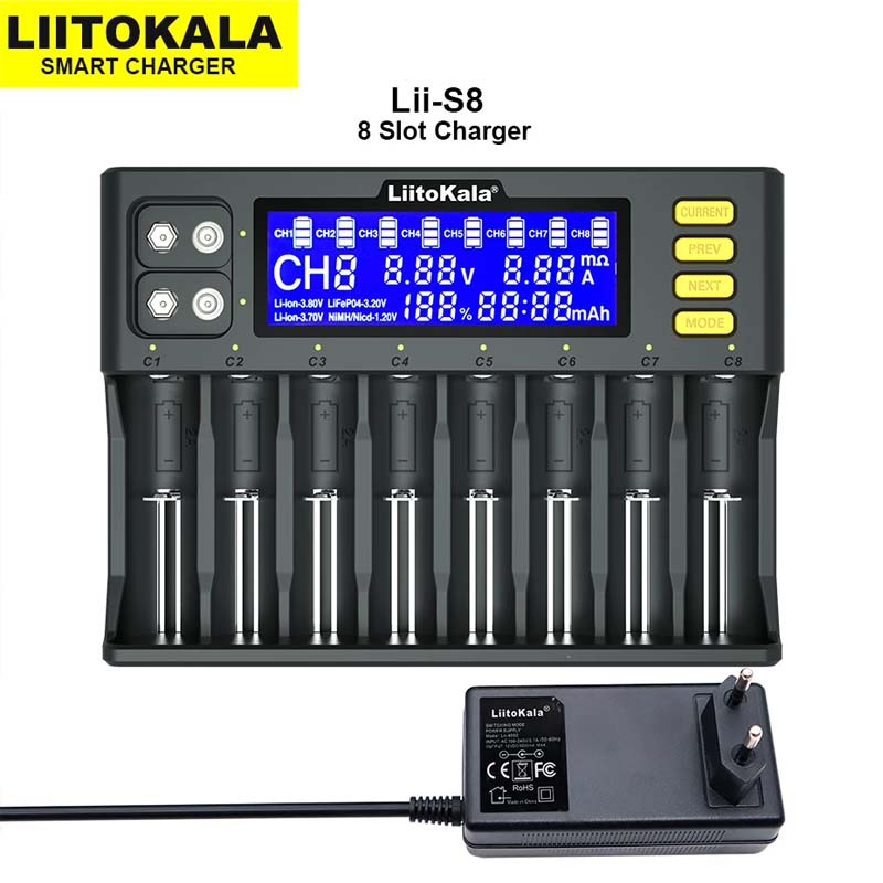 Bộ Sạc Lii S8 Đa năng 8 Khe pin, Sạc pin 26650 18650 AA AAA tự ngắt khi đầy Cho pin sạc 2A, 3A 1.2V 3.6V 4.2V 9V