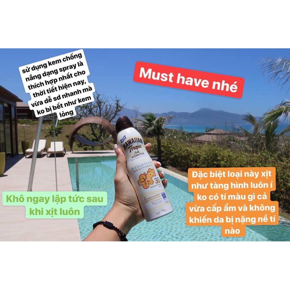 Xịt Chống Nắng Toàn Thân Hawaiian Tropic Clear Spray Sunscreen Silk Hydration SPF 70
