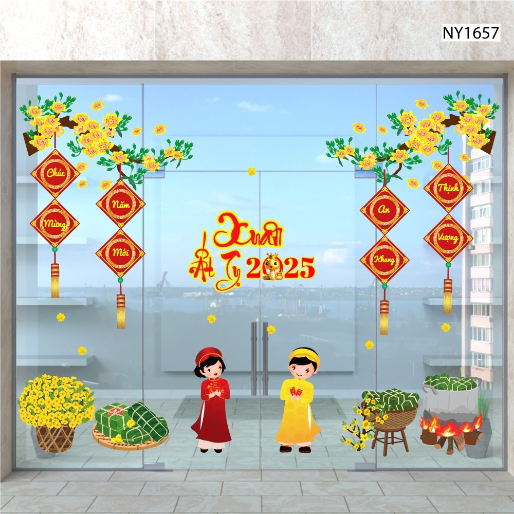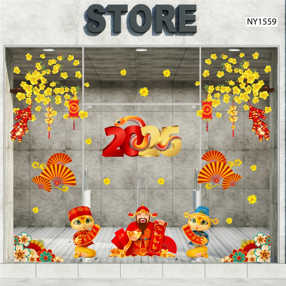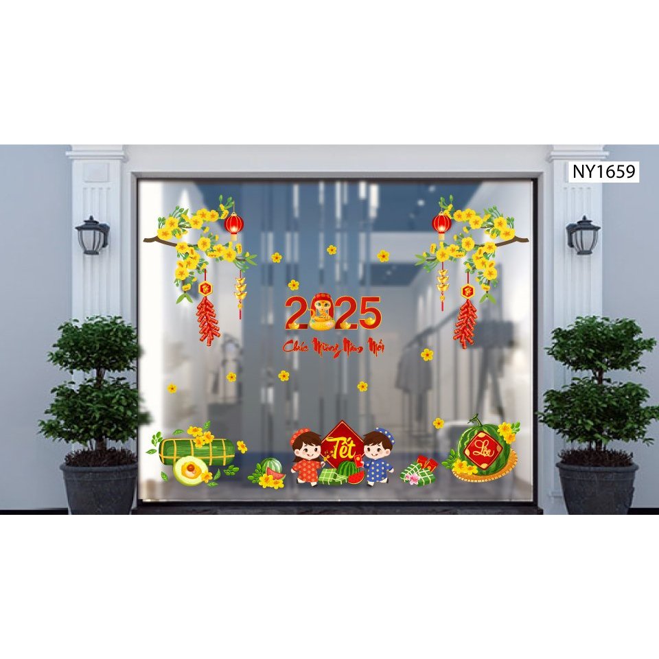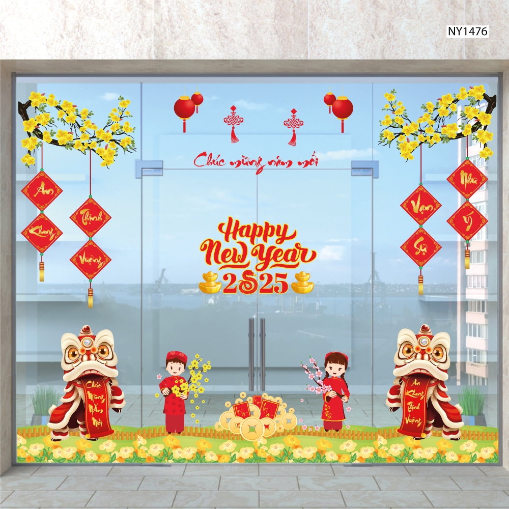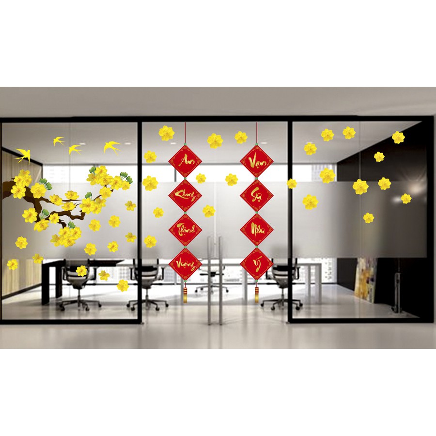 Combo decal trang trí tết Lala cao cấp dán được trên tường, cửa kính không gây bẩn dễ dàng tháo dán