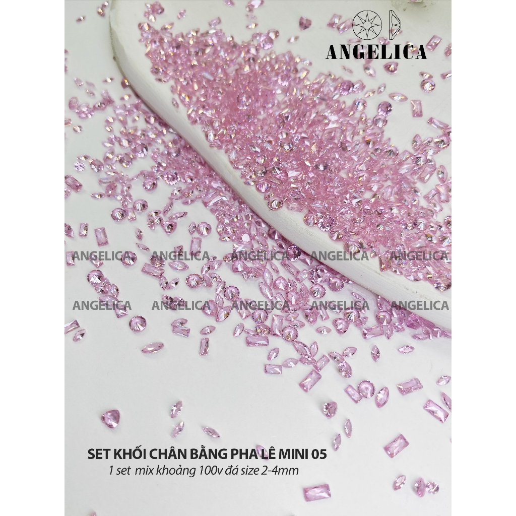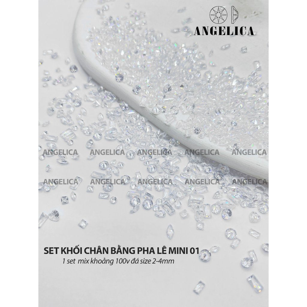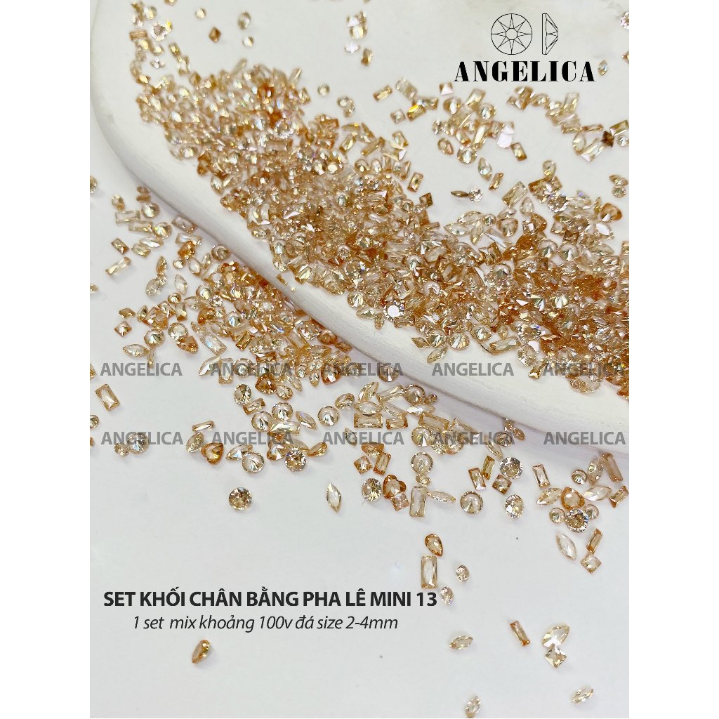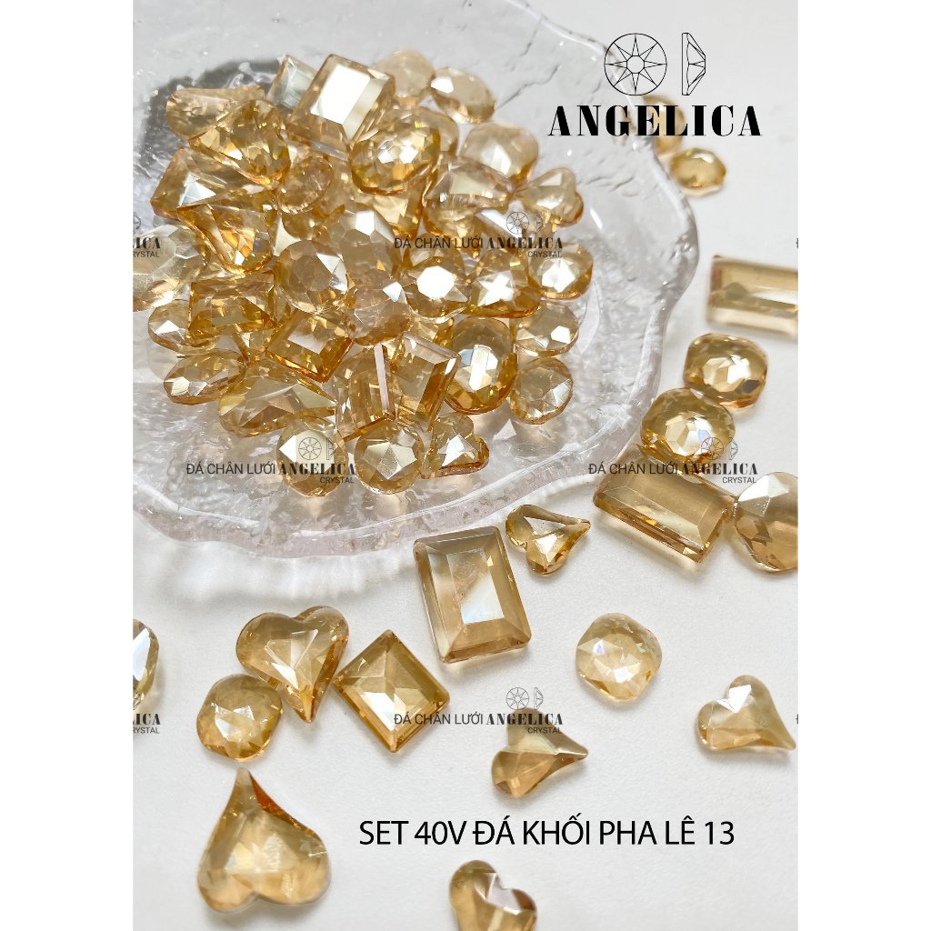 Set 40 viên đá pha lê nails màu trong suốt trắng, hồng, đen, vàng trà đính móng size đại trang trí nail ANGELICA PL