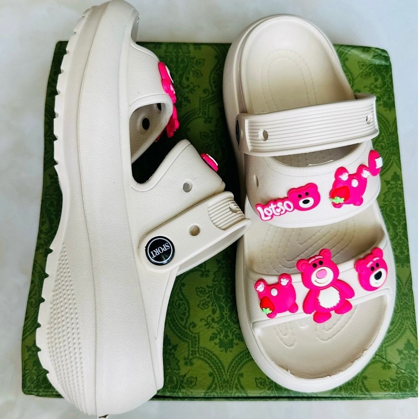 Dép sandal nữ dép quai ngang bánh mì siêu nhẹ đế dày cao 5 phân Đính nhiều STICK dễ thương hottrend ( 617)