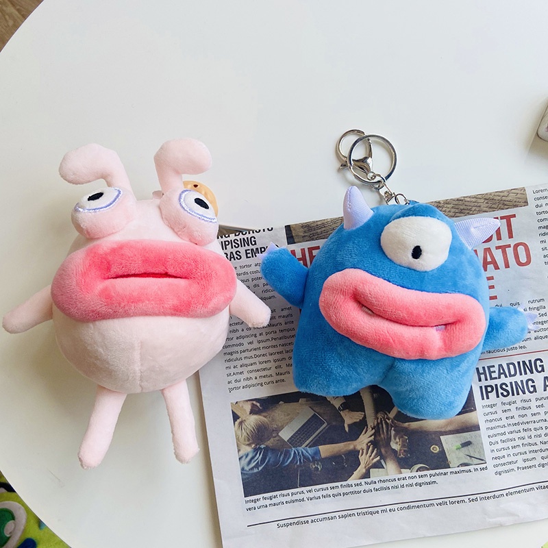 Móc chìa khoá gấu bông môi trề mắt trố độc đáo / Có sẵn /
