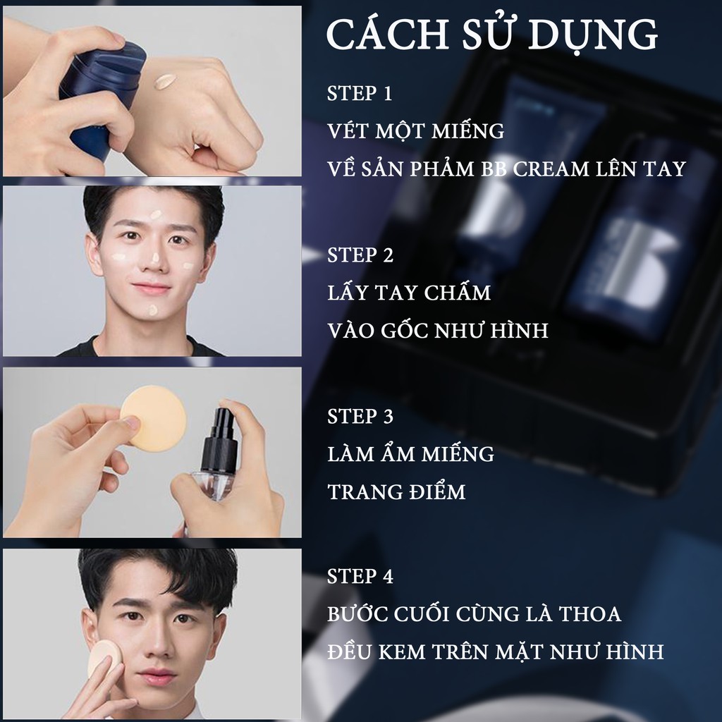 Bộ Combo BB Cream Kem Nền Che Khuyết Điểm Làm Đẹp Cho Nam Giới 50g+20g