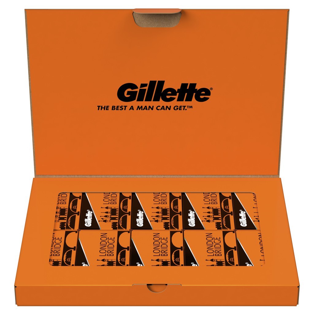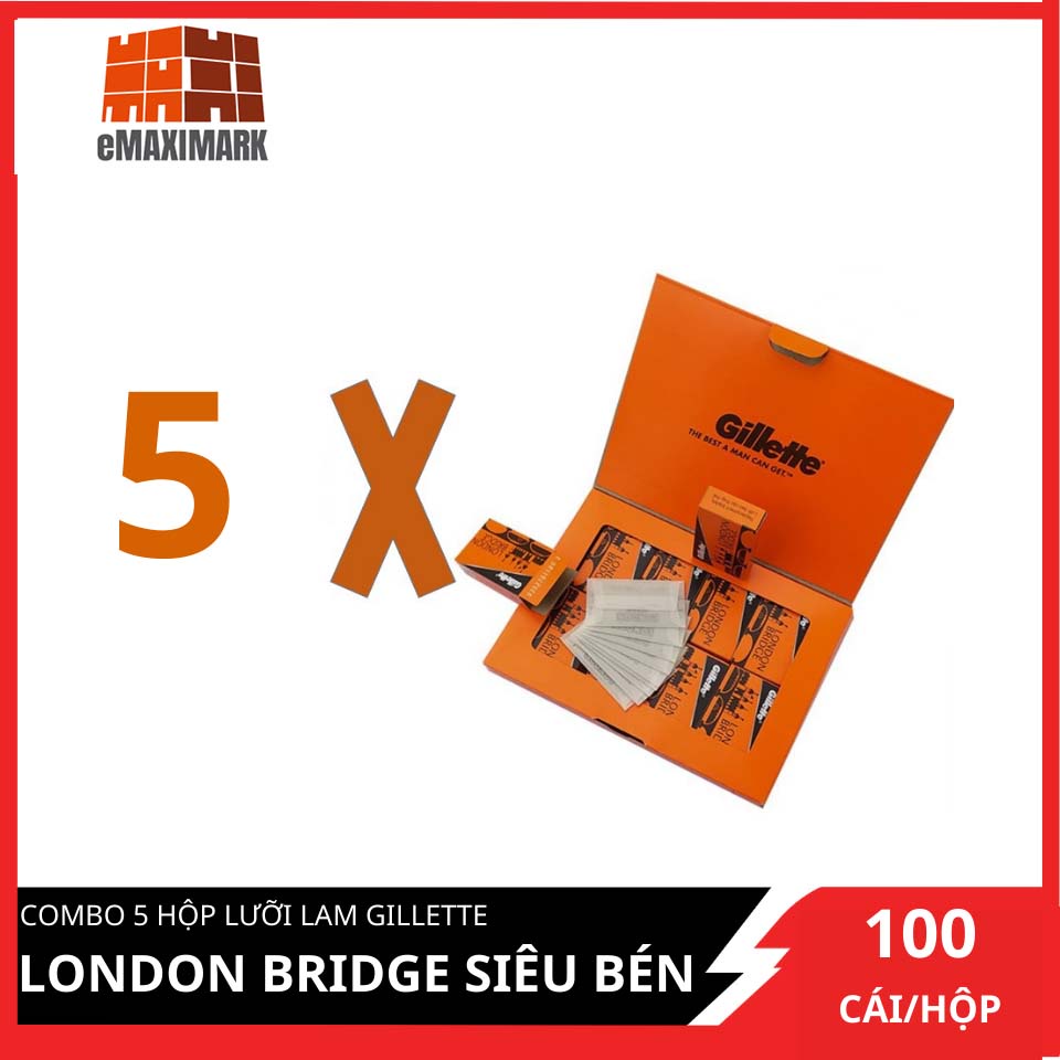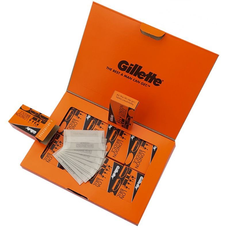 Combo 5 hộp lưỡi lam Gillette London Bridge (Cam) siêu béng dành cho Barbershop 100 cái/hộpX5