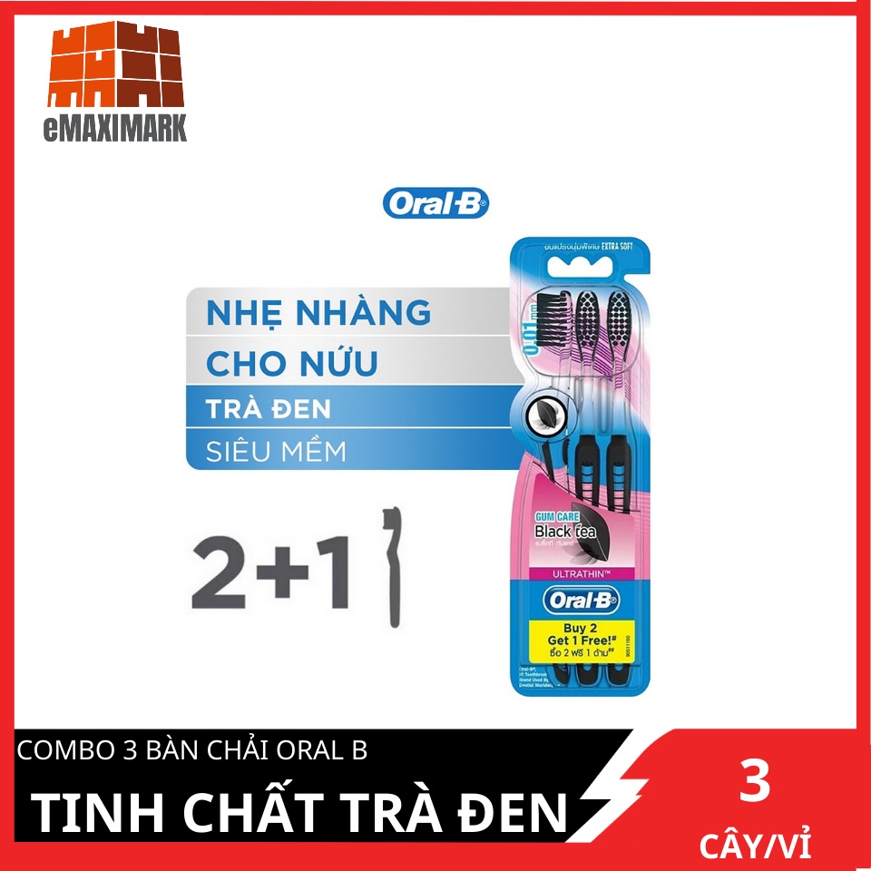 Bàn chải Oral B Tinh chất trà đen Vỉ 3 cây (2 tặng 1) (khuyên dùng bởi Nha sĩ)