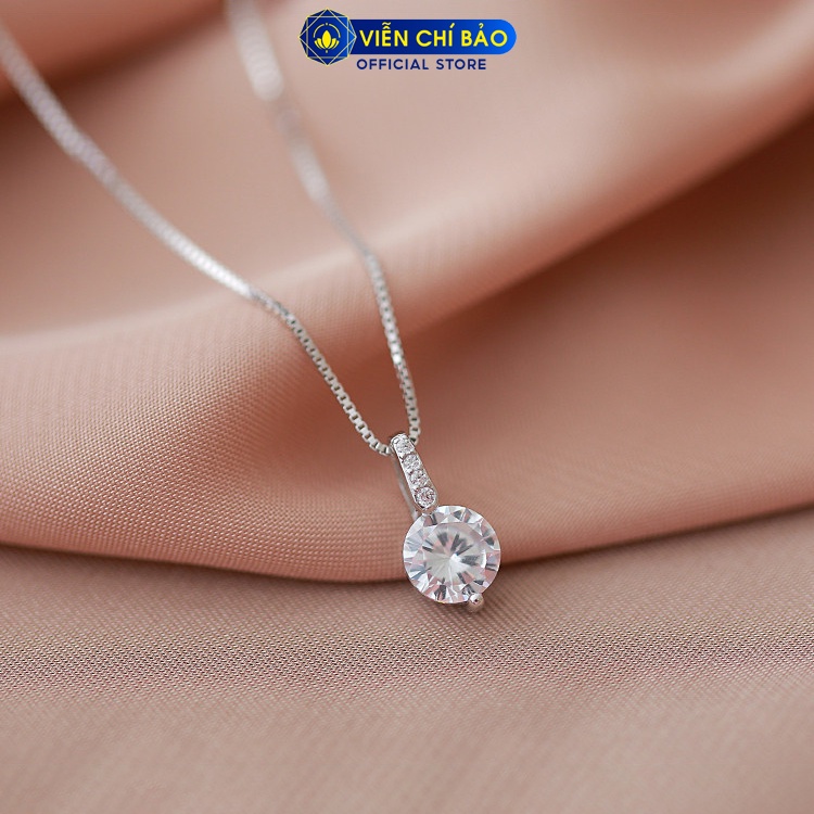 Dây chuyền bạc nữ, v òng cổ đá tròn lấp lánh chất liệu bạc 925 - Viễn Chí Bảo D400483
