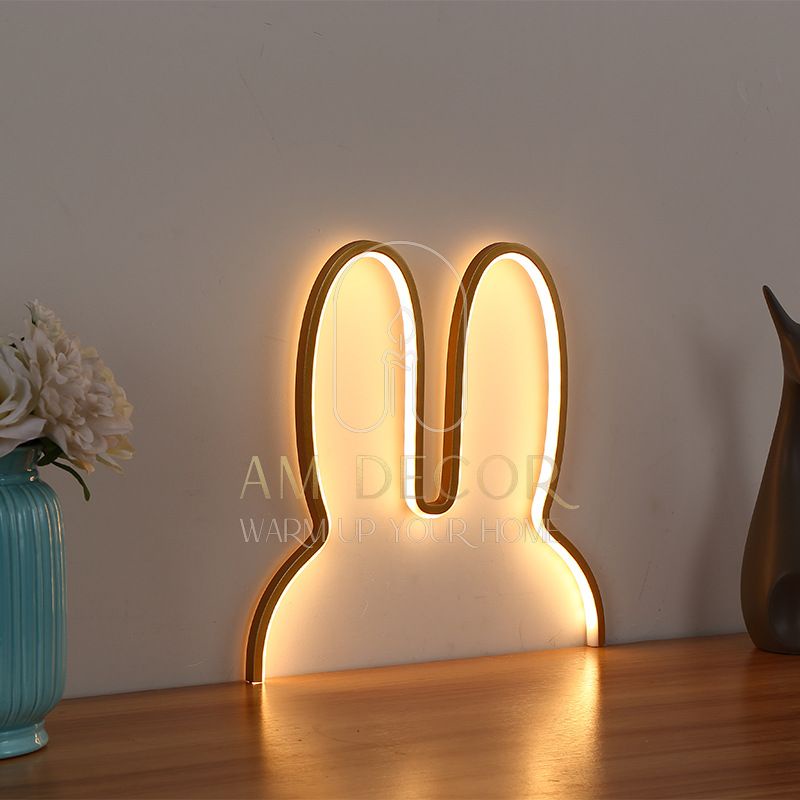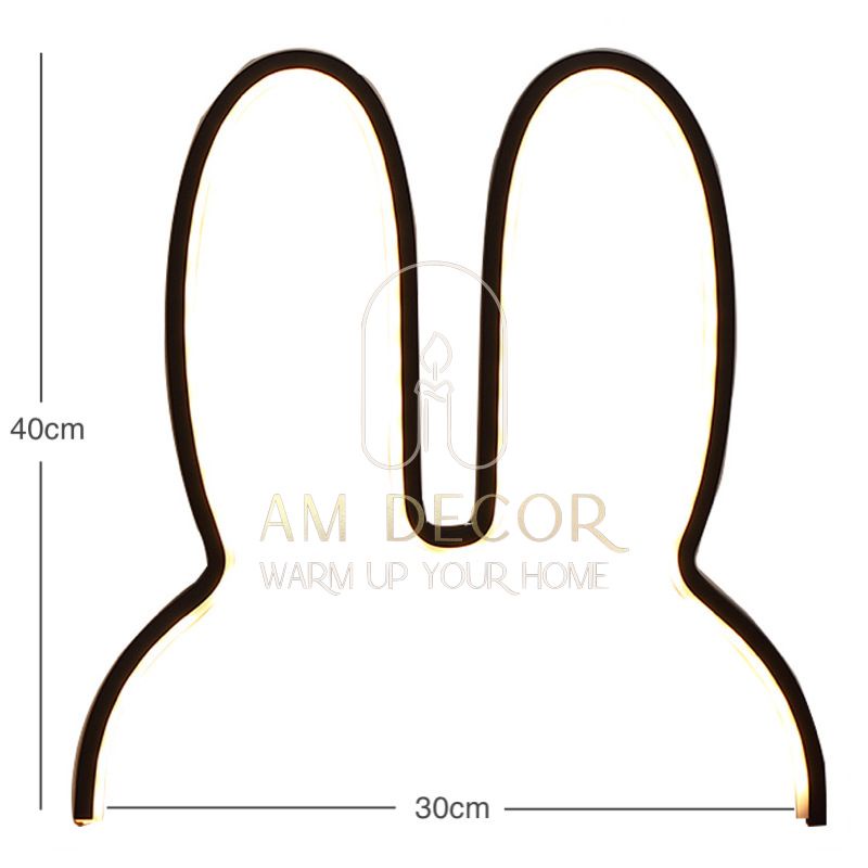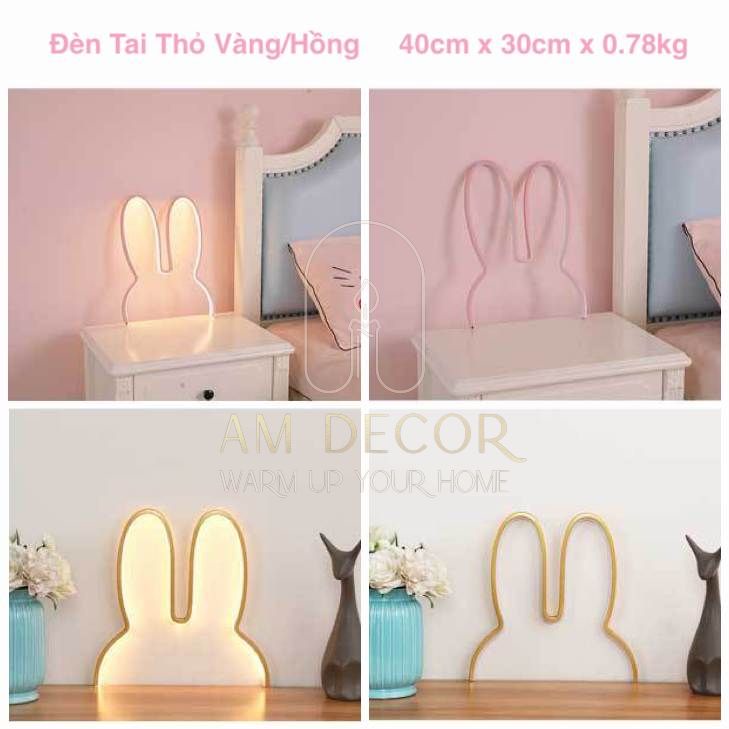 Đèn tai thỏ LED cắm điện cổng USB 40x30cm để bàn, treo tường sáng tạo decor trang trí phòng ngủ đáng yêu - AM Decor