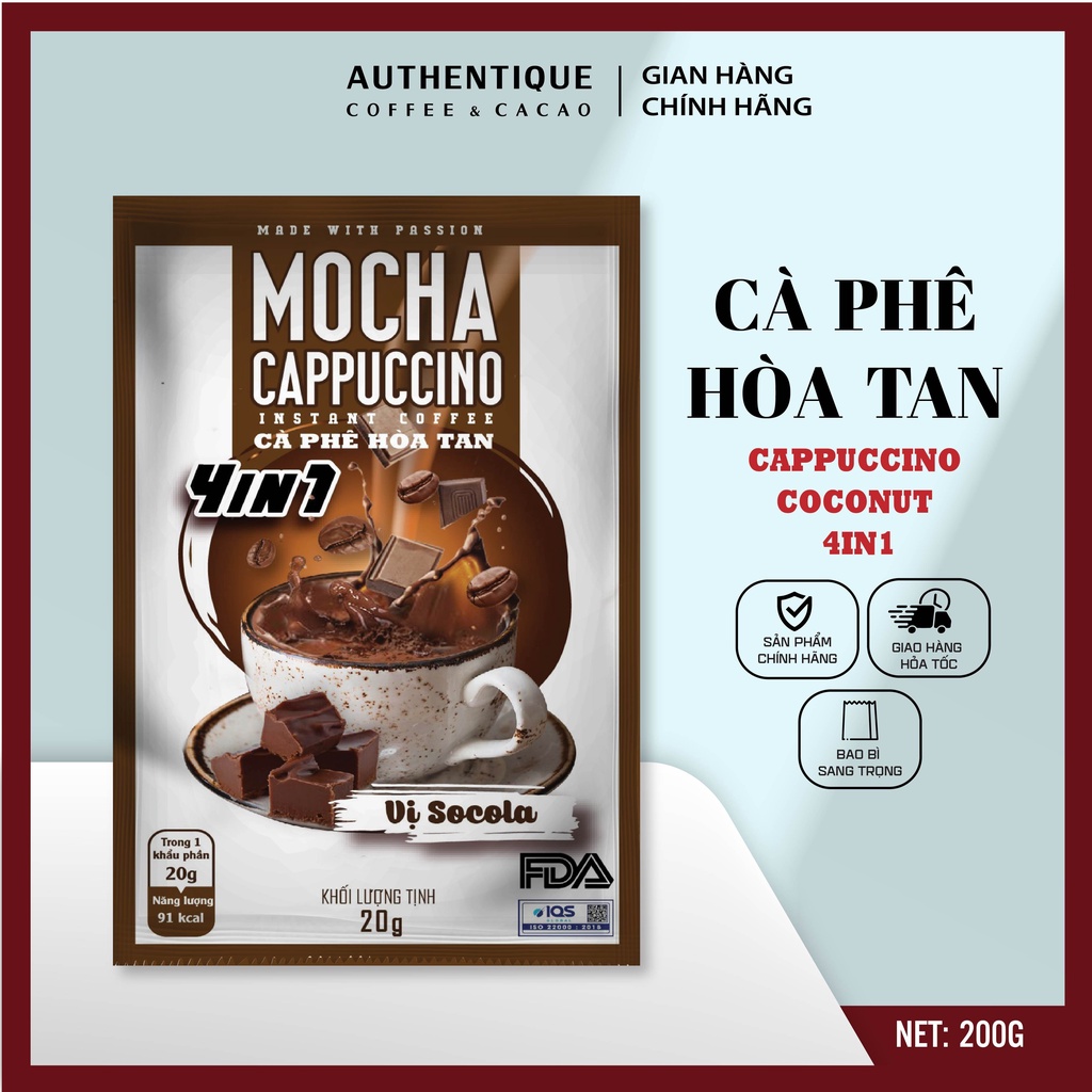 Cà phê pha sẵn hòa tan vị Mocha 4in1 20G - Mocha Cappuccino Instant Coffee | Authentique Instant Coffee