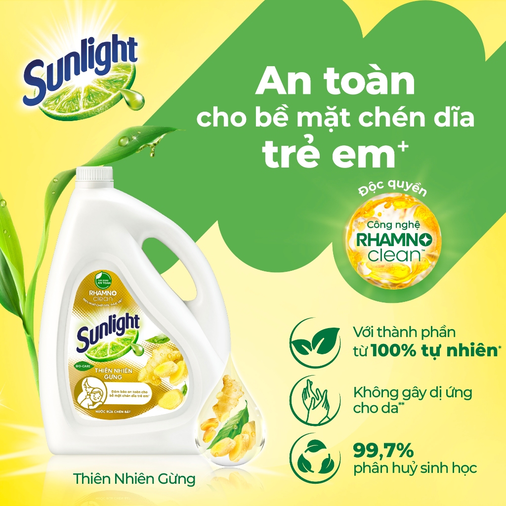 Combo 2 Nước rửa chén Sunlight Bio-care với thành phần từ 100% tự nhiên Chai 3.5kg