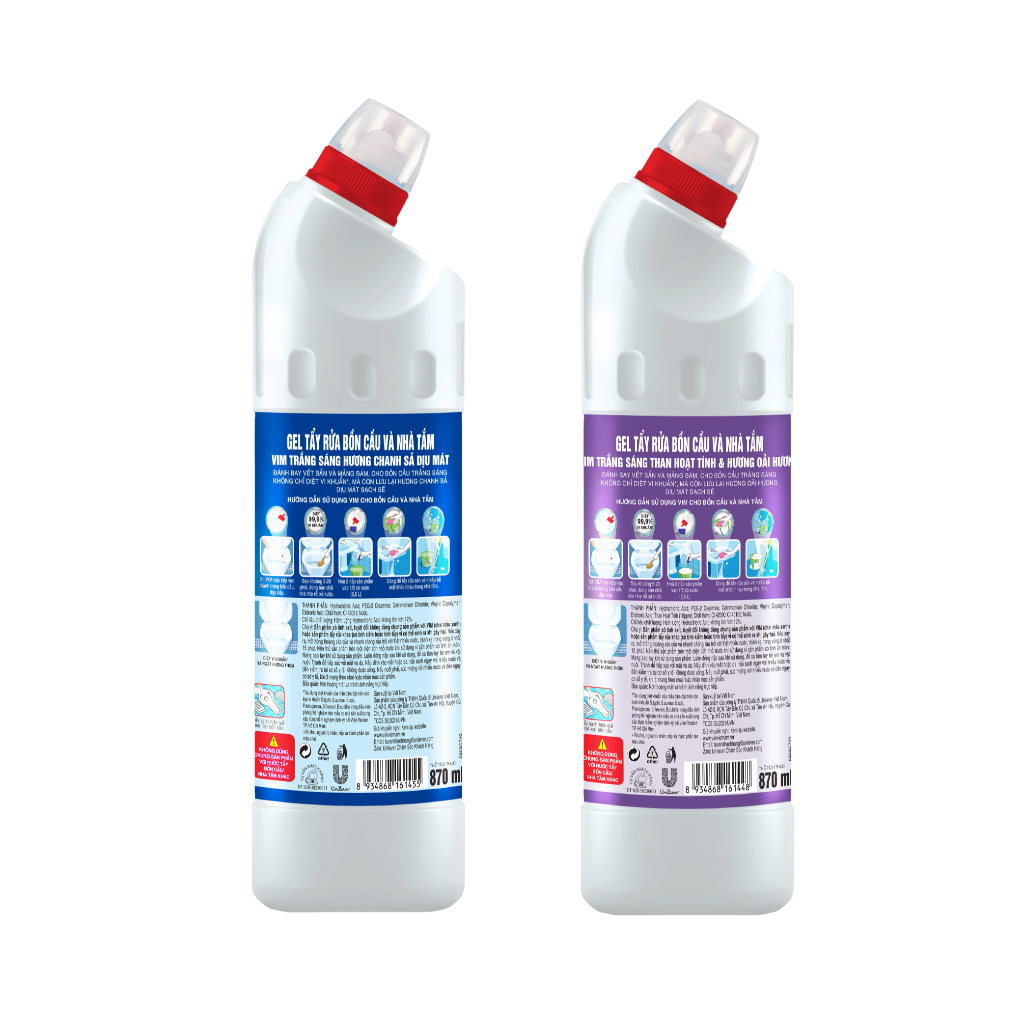 Combo 2 Nước Tẩy Bồn Cầu và Nhà Vệ Sinh Vim Trắng Sáng | Sạch Thơm Dịu Mát Với Hương Chanh Sả và Hương Lavender (870ml)
