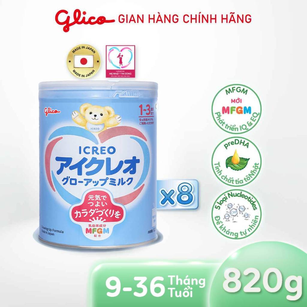 [DATE MỚI 2027] Thùng 8 Lon Sữa Bột Công Thức Cho Bé Glico Icreo Grow-Up (Số 1) Nhật Bản Lon 820g