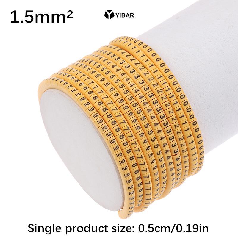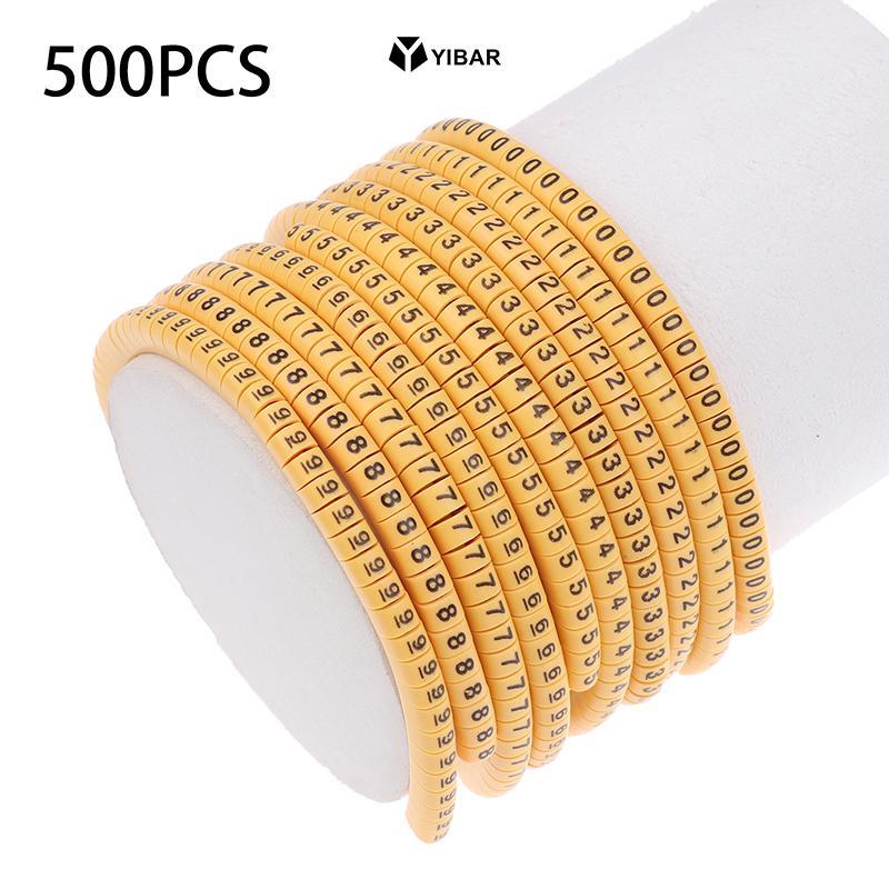 YIBAR 500 Chiếc Màu Vàng Cáp Đánh Dấu EC-0.5 1 1.5 2.5 Mm2 Cho Đường Kính Dây Ống Dây Số Ống Mới