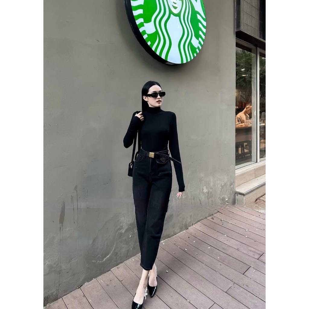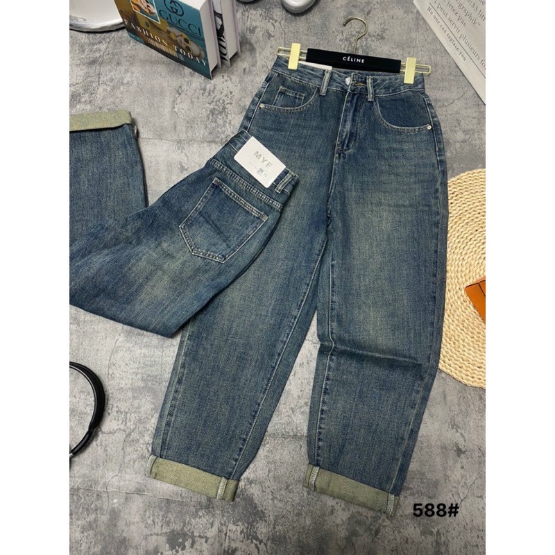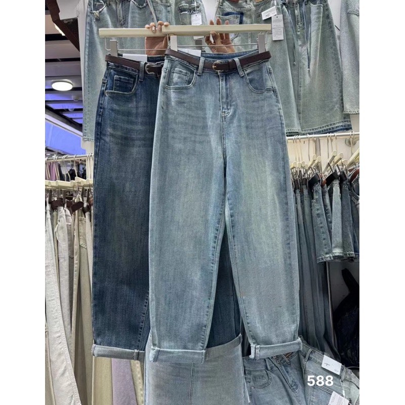 Quần jean baggy nữ chất co giãn, có cà bông 2 màu kèm belt chuẩn L1